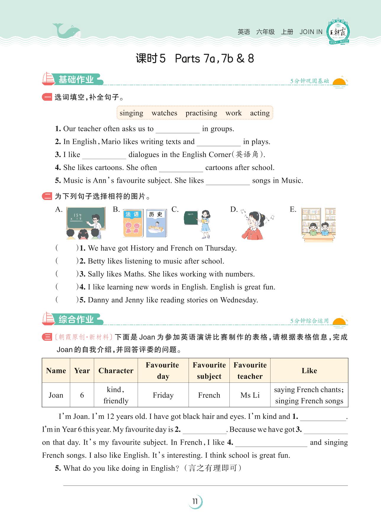2023上册六年级英语剑桥版 Unit 1—课时 5 Parts 7a,7b & 8