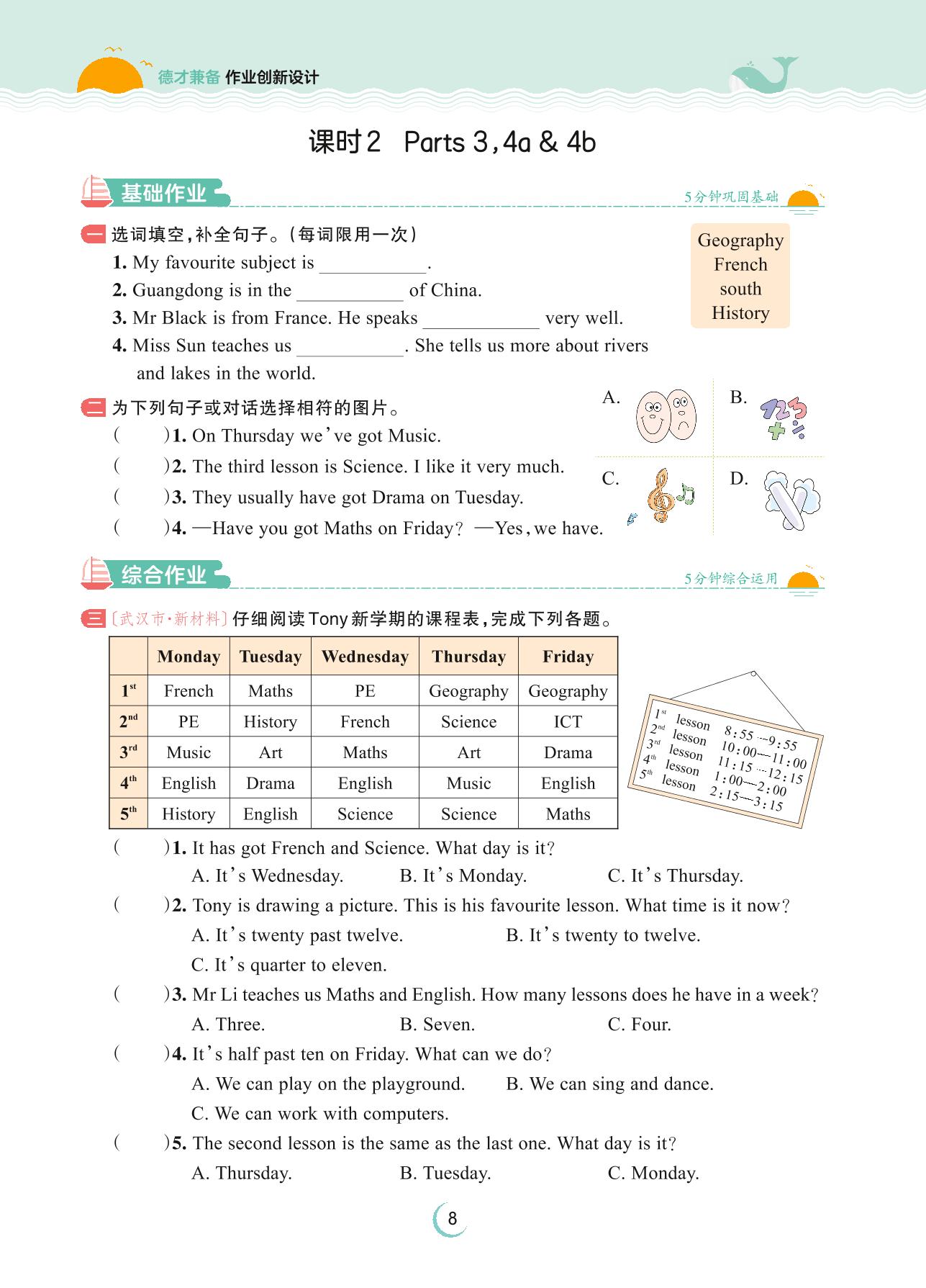 2023上册六年级英语剑桥版 Unit 1—课时 2 Parts 3,4a & 4b