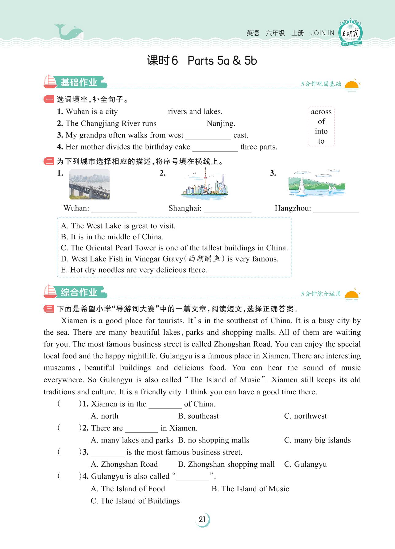 2023上册六年级英语剑桥版 Unit 2—课时 6 Parts 5a & 5b