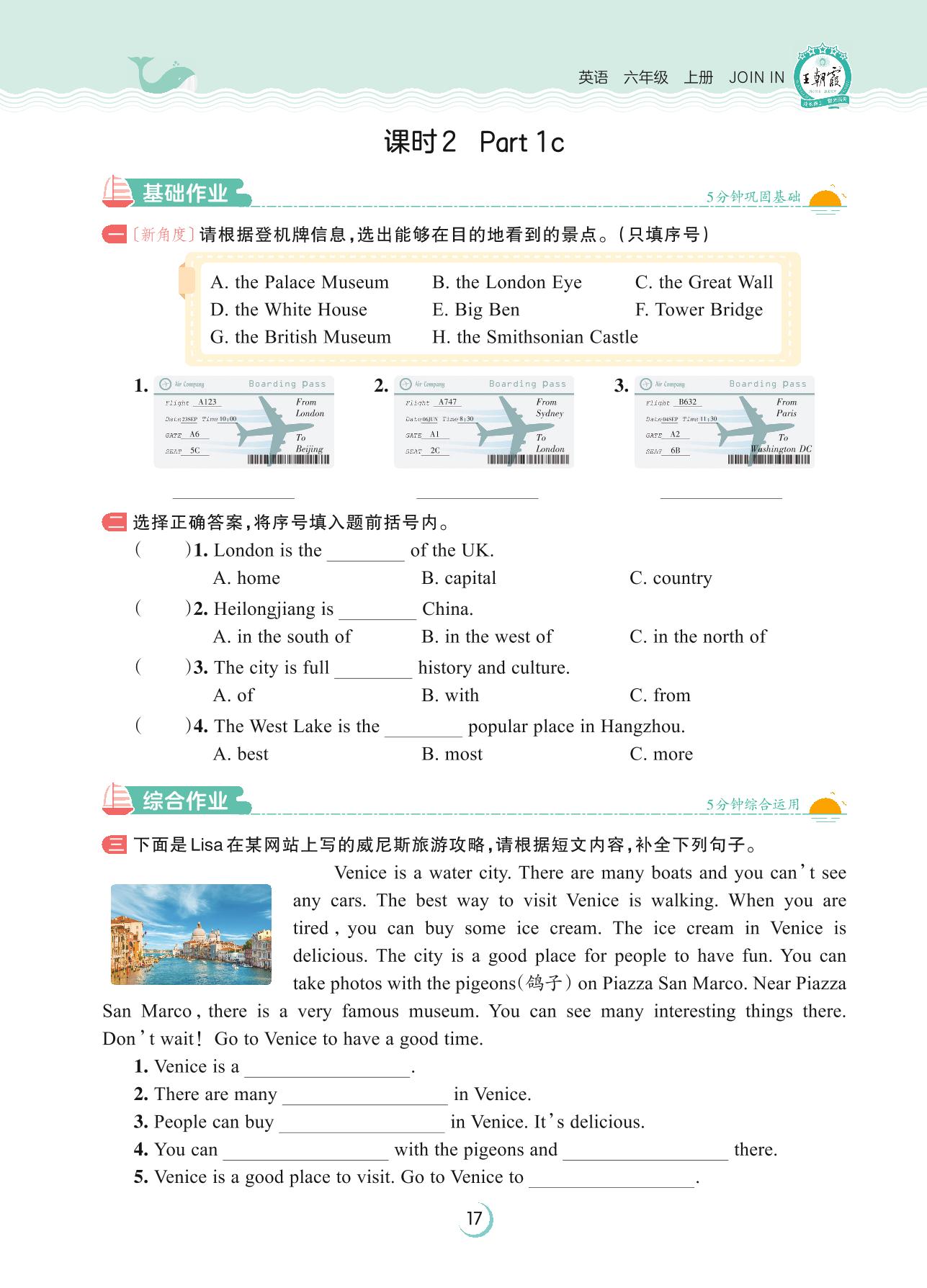 2023上册六年级英语剑桥版 Unit 2—课时 2 Part 1c