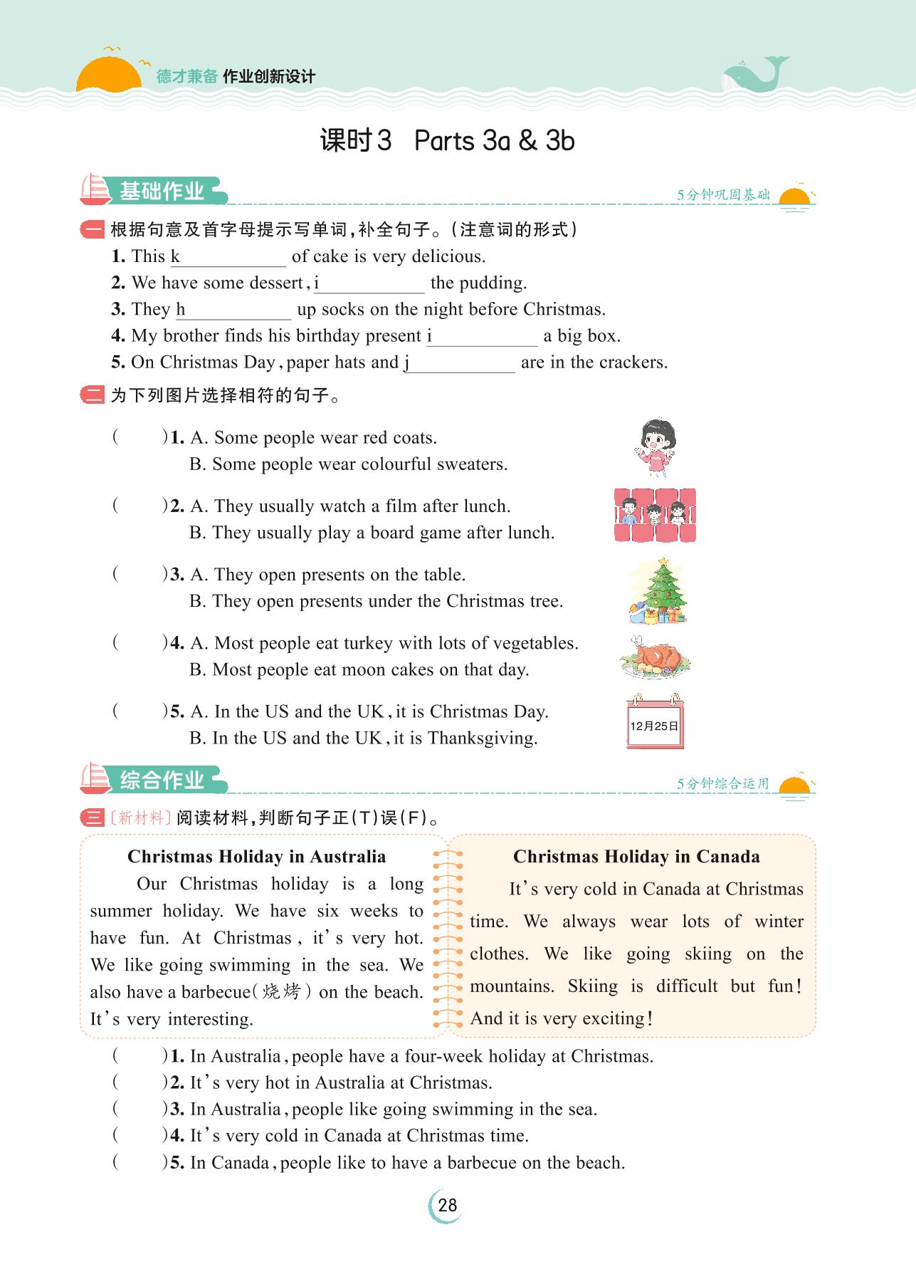 2023上册六年级英语剑桥版 Unit 3—课时 3 Parts 3a & 3b