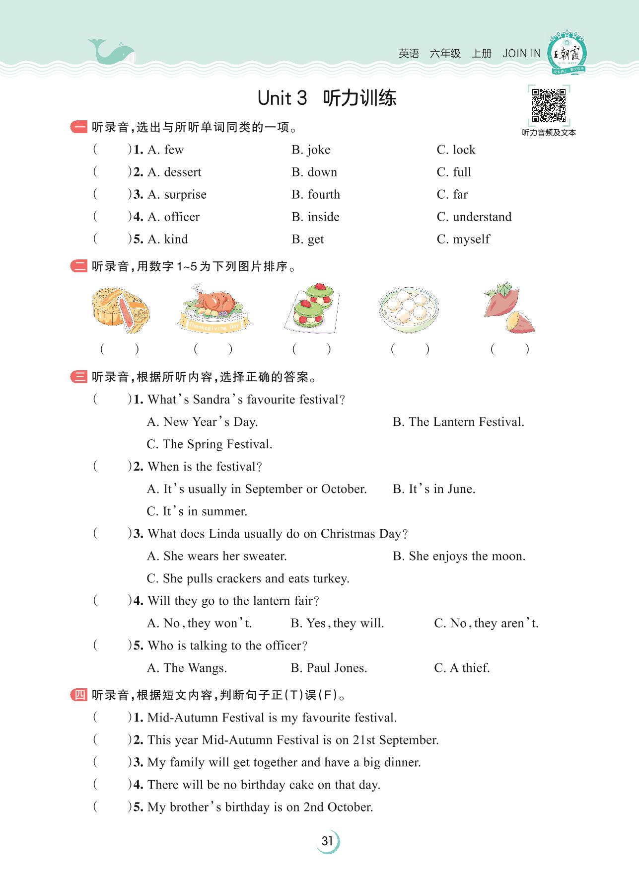 2023上册六年级英语剑桥版 Unit 3 听力训练
