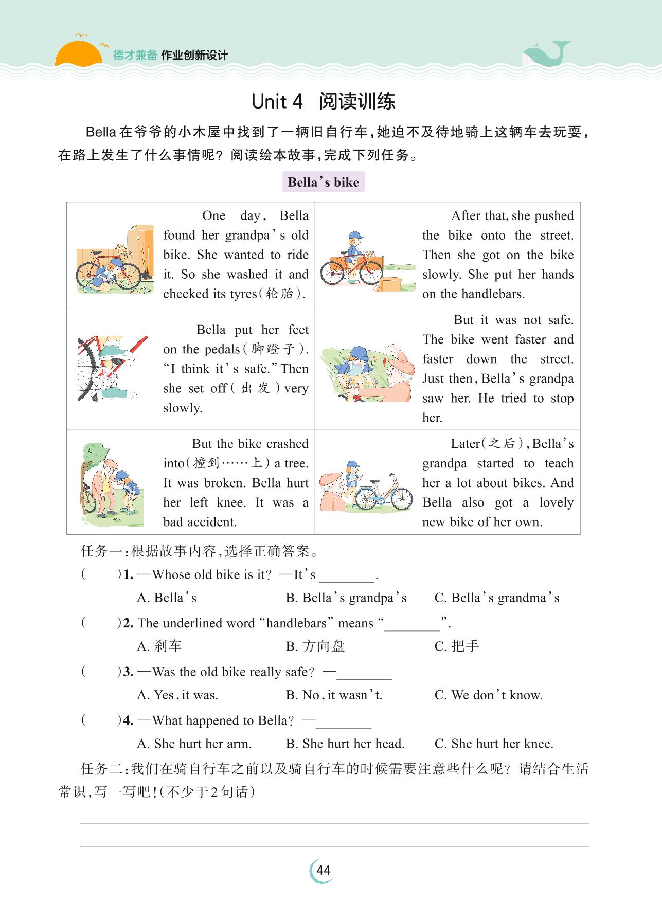 2023上册六年级英语剑桥版 Unit 4 阅读训练