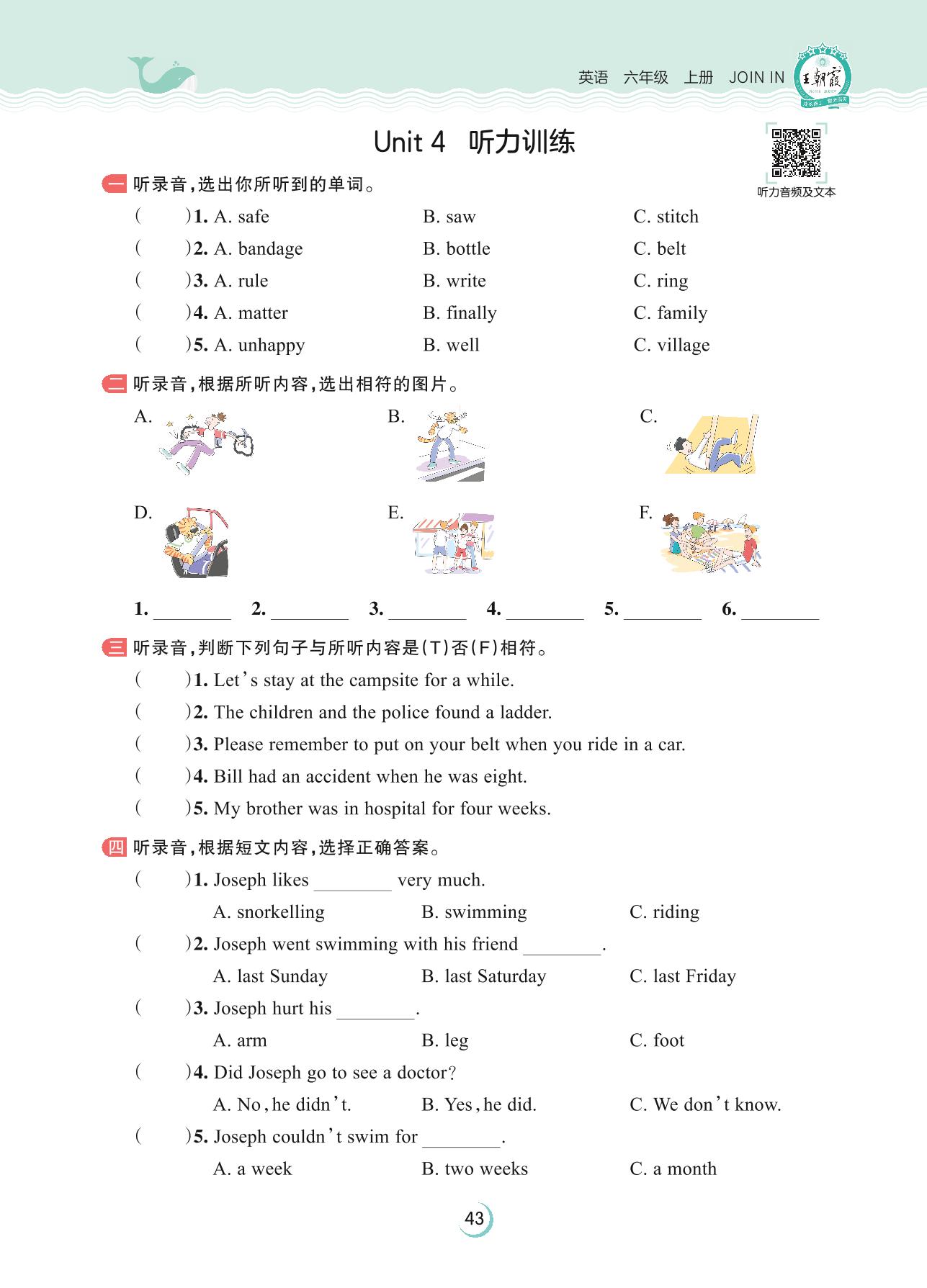 2023上册六年级英语剑桥版 Unit 4 听力训练