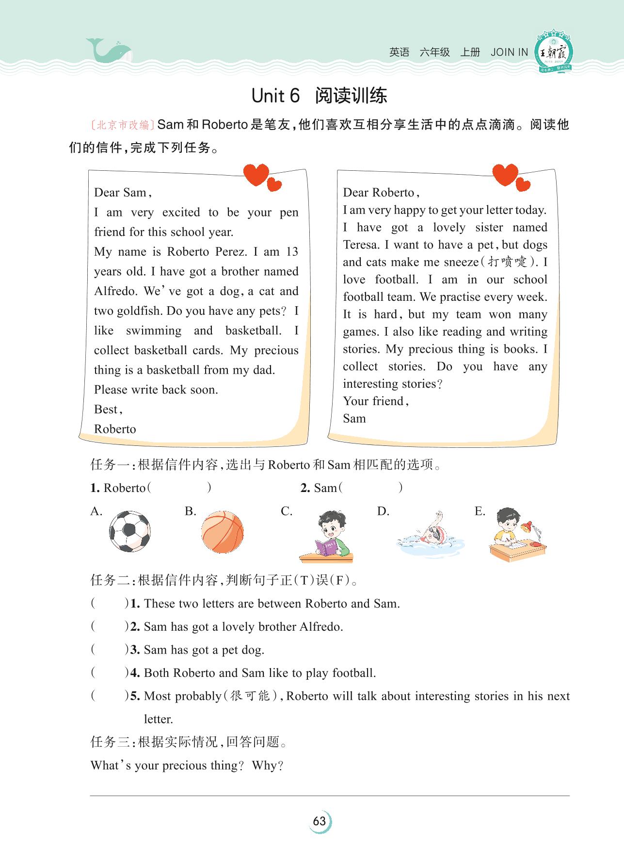 2023上册六年级英语剑桥版 Unit 6 阅读训练