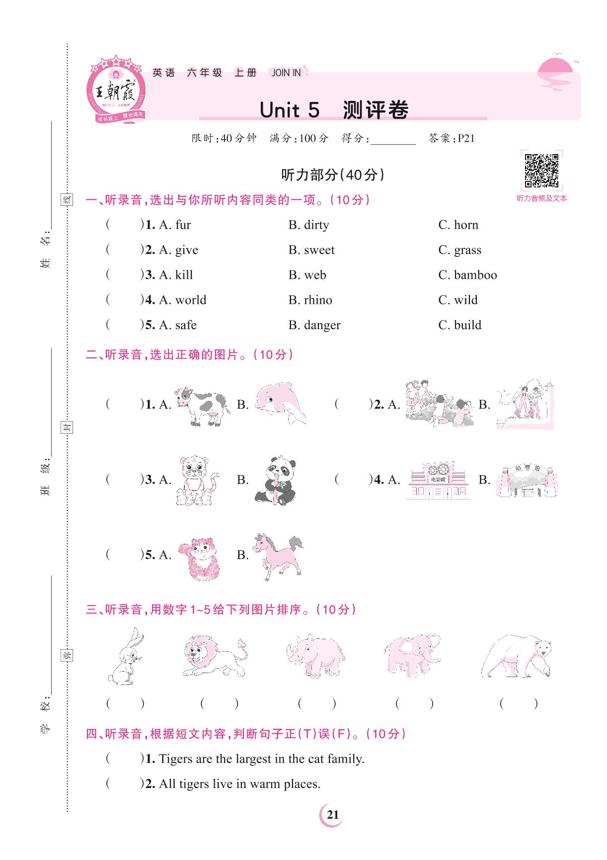 2023上册六年级英语剑桥版 Unit 5 测评卷