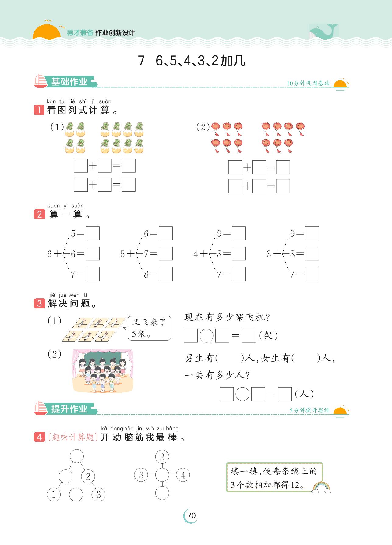 2023上册一年级数学苏教版 第十单元 20以内的进位加法——7 6、5、4、3、2加几