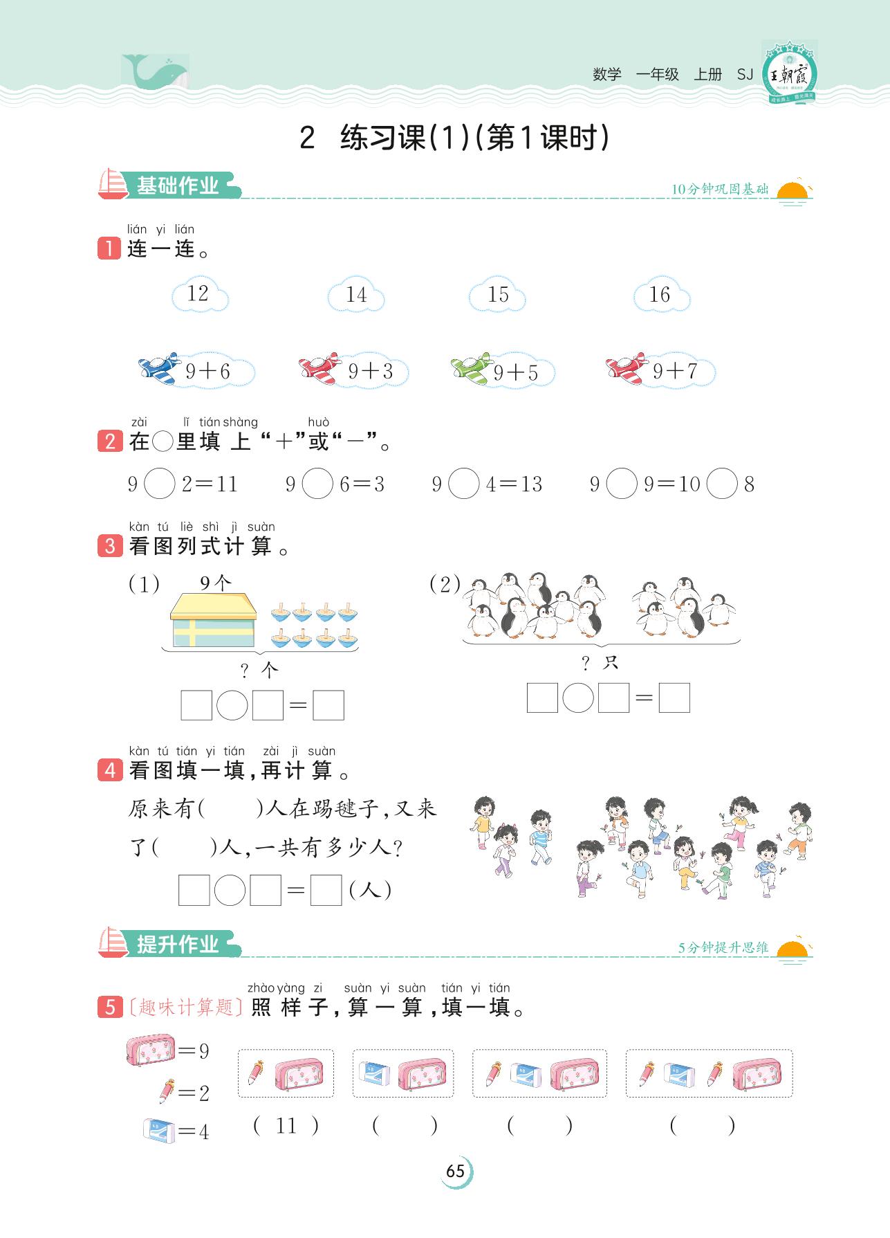 2023上册一年级数学苏教版 第十单元 20以内的进位加法——2 练习课(1)(第1课时)