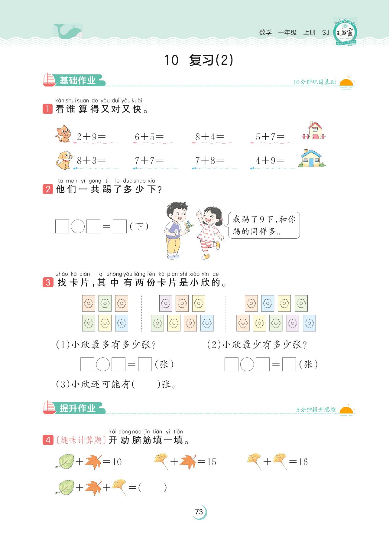 2023上册一年级数学苏教版 第十单元 20以内的进位加法——10 复习(2)
