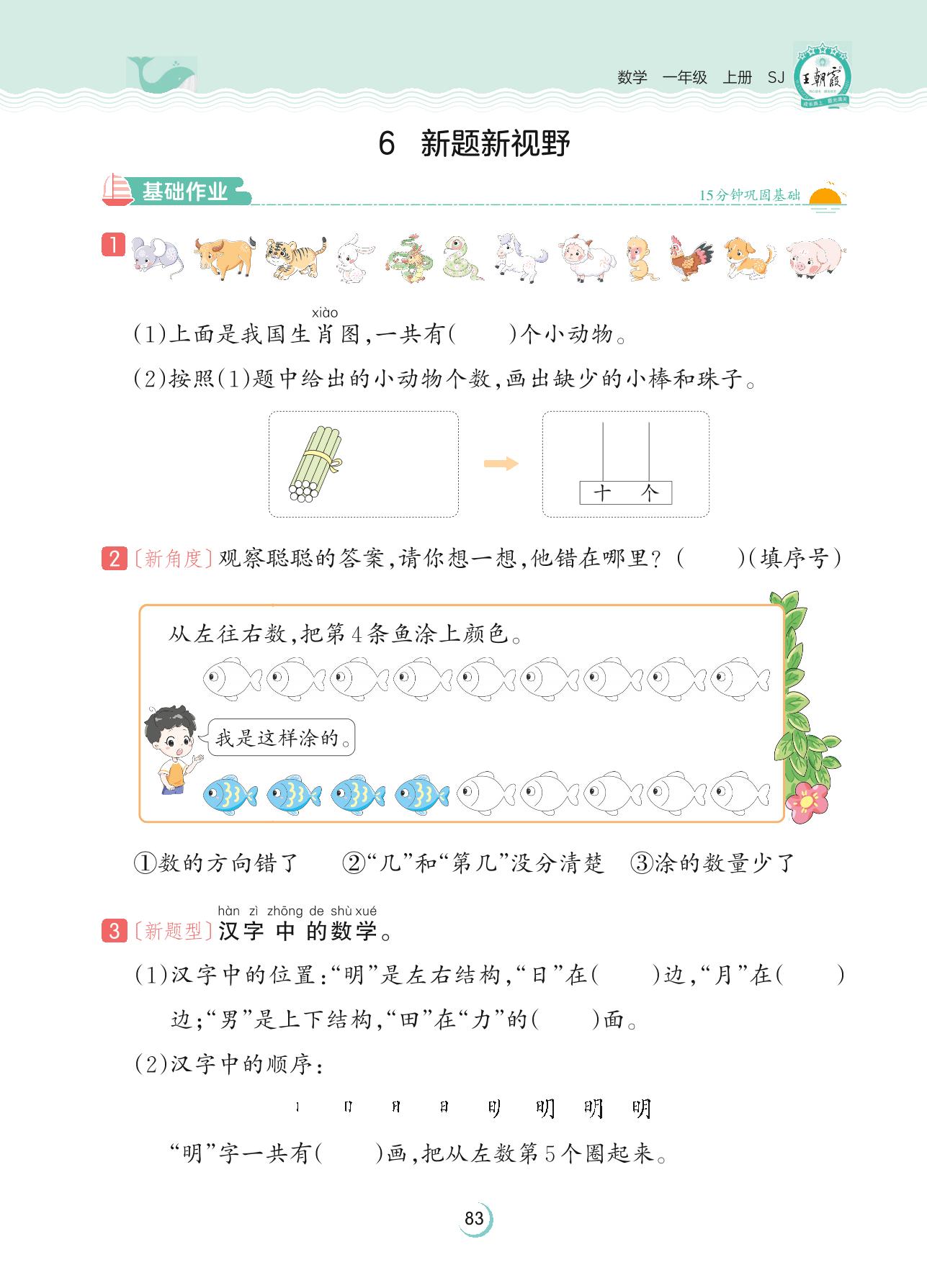 2023上册一年级数学苏教版 第十一单元 期末复习——6 新题新视野