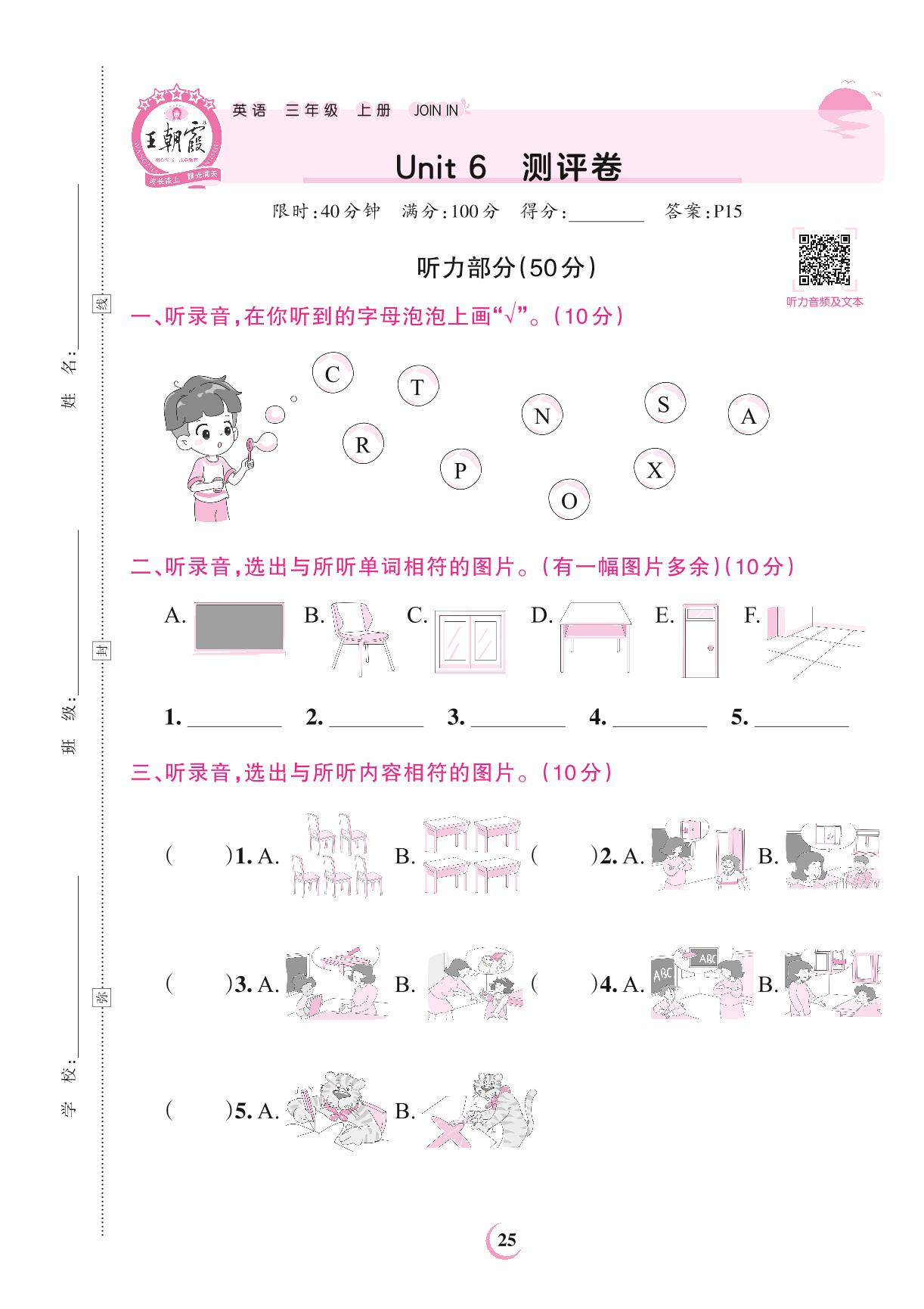 2023上册三年级英语剑桥版 Unit 6 测评卷