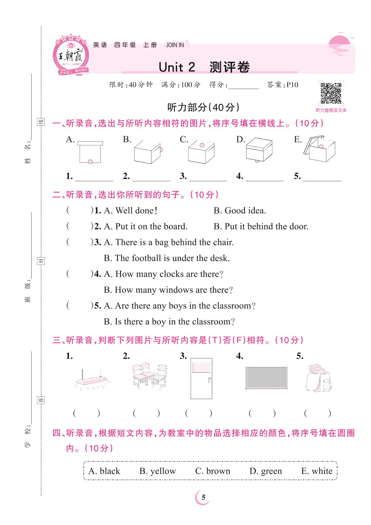 四年级英语剑桥版上册单元卷