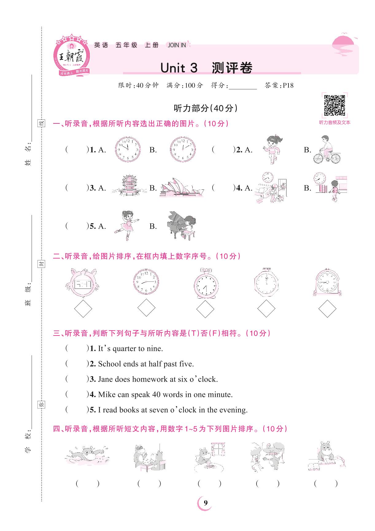 2023上册五年级英语剑桥版 Unit 3 测评卷