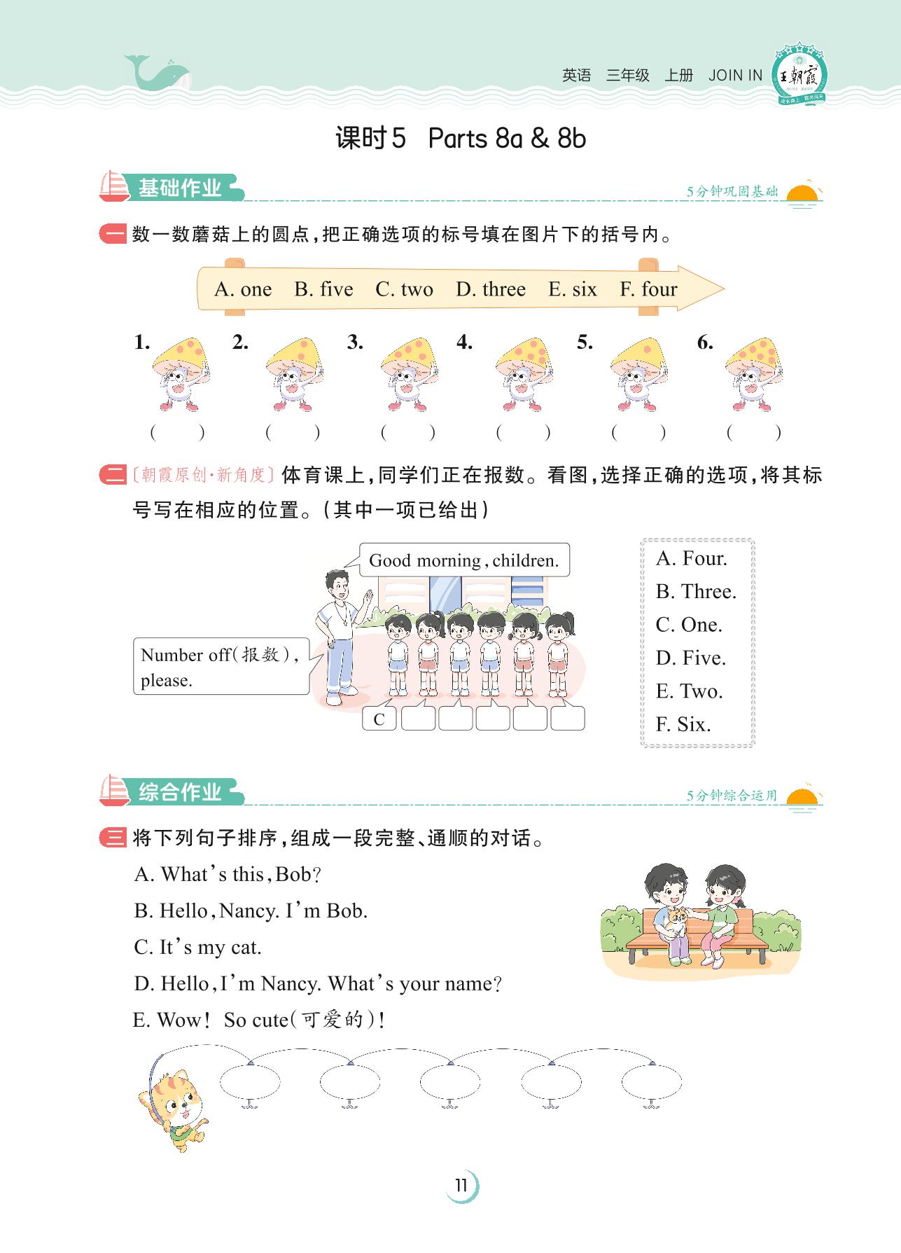 2023上册三年级英语剑桥版 Unit 1—课时5 Parts 8a & 8b