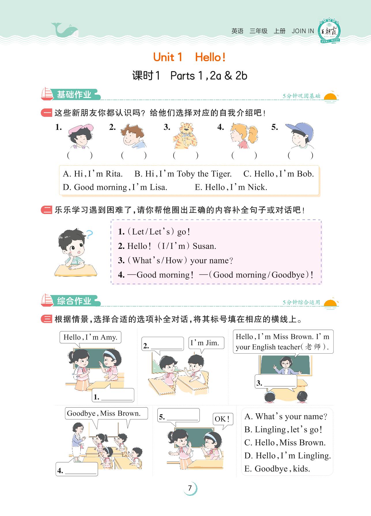 2023上册三年级英语剑桥版 Unit 1—课时1 Parts 1,2a & 2b