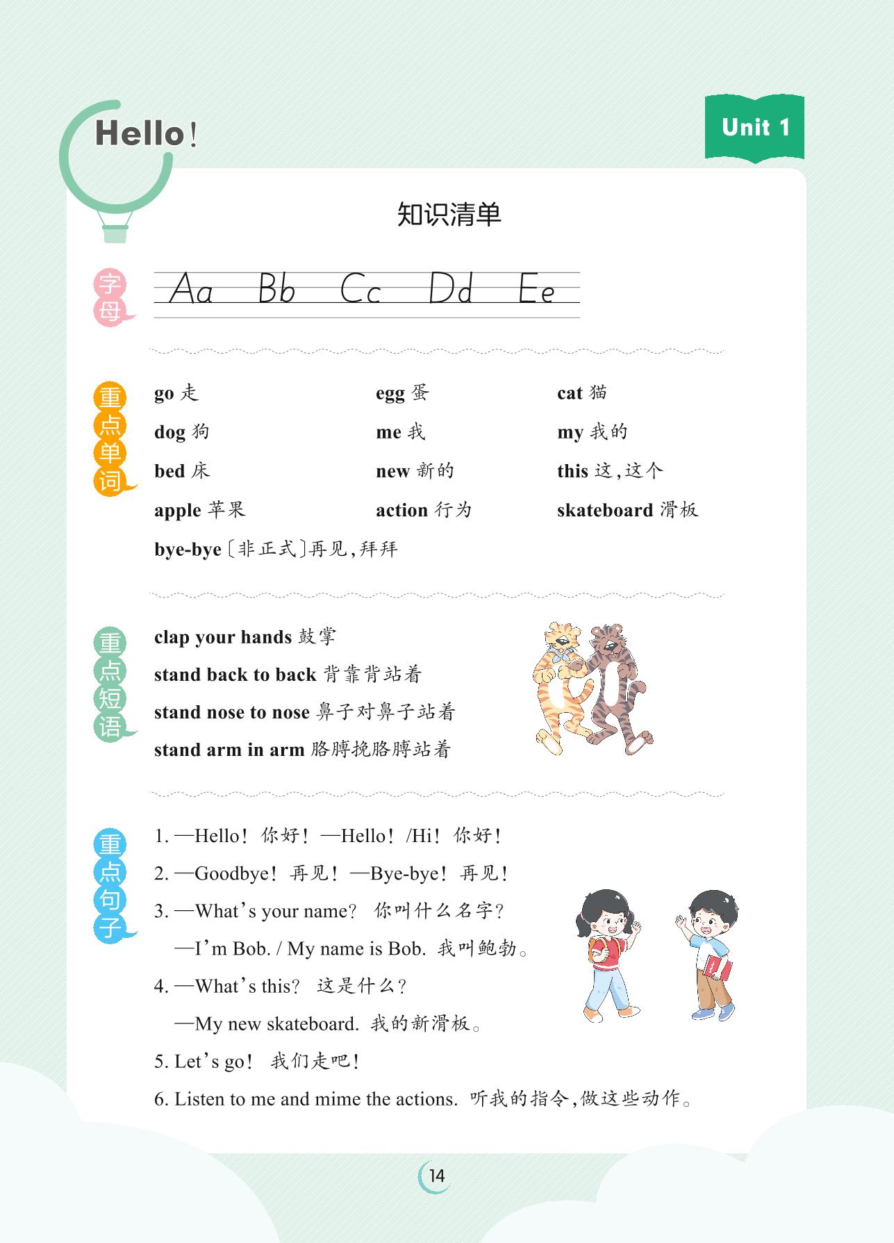 2023上册三年级英语剑桥版 Unit 1 知识清单