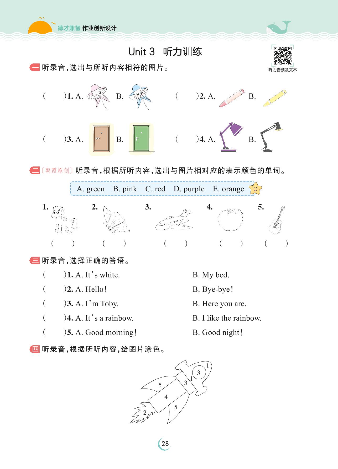 2023上册三年级英语剑桥版 Unit 3 听力训练