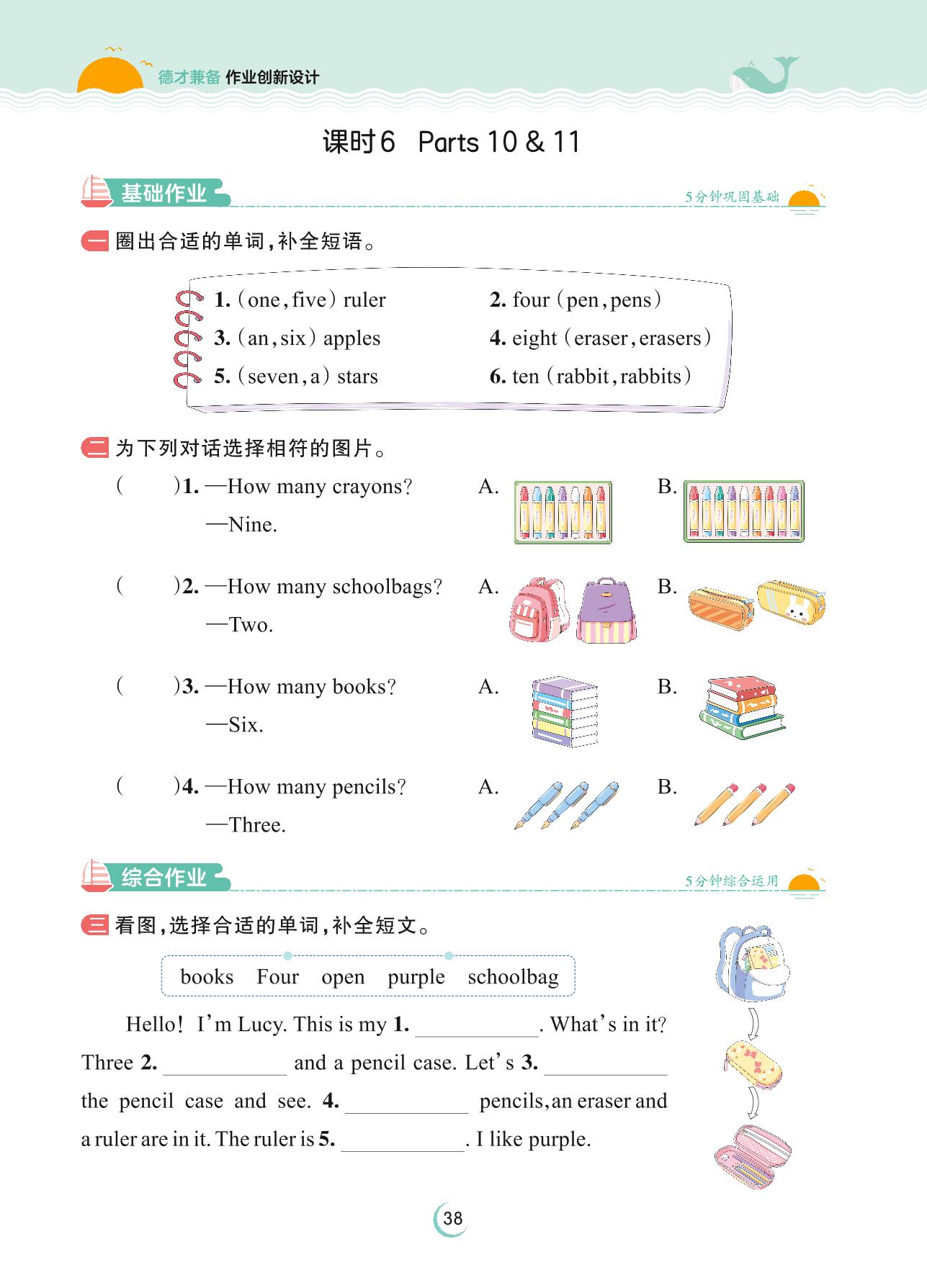 2023上册三年级英语剑桥版 Unit 4—课时6 Parts 10 & 11