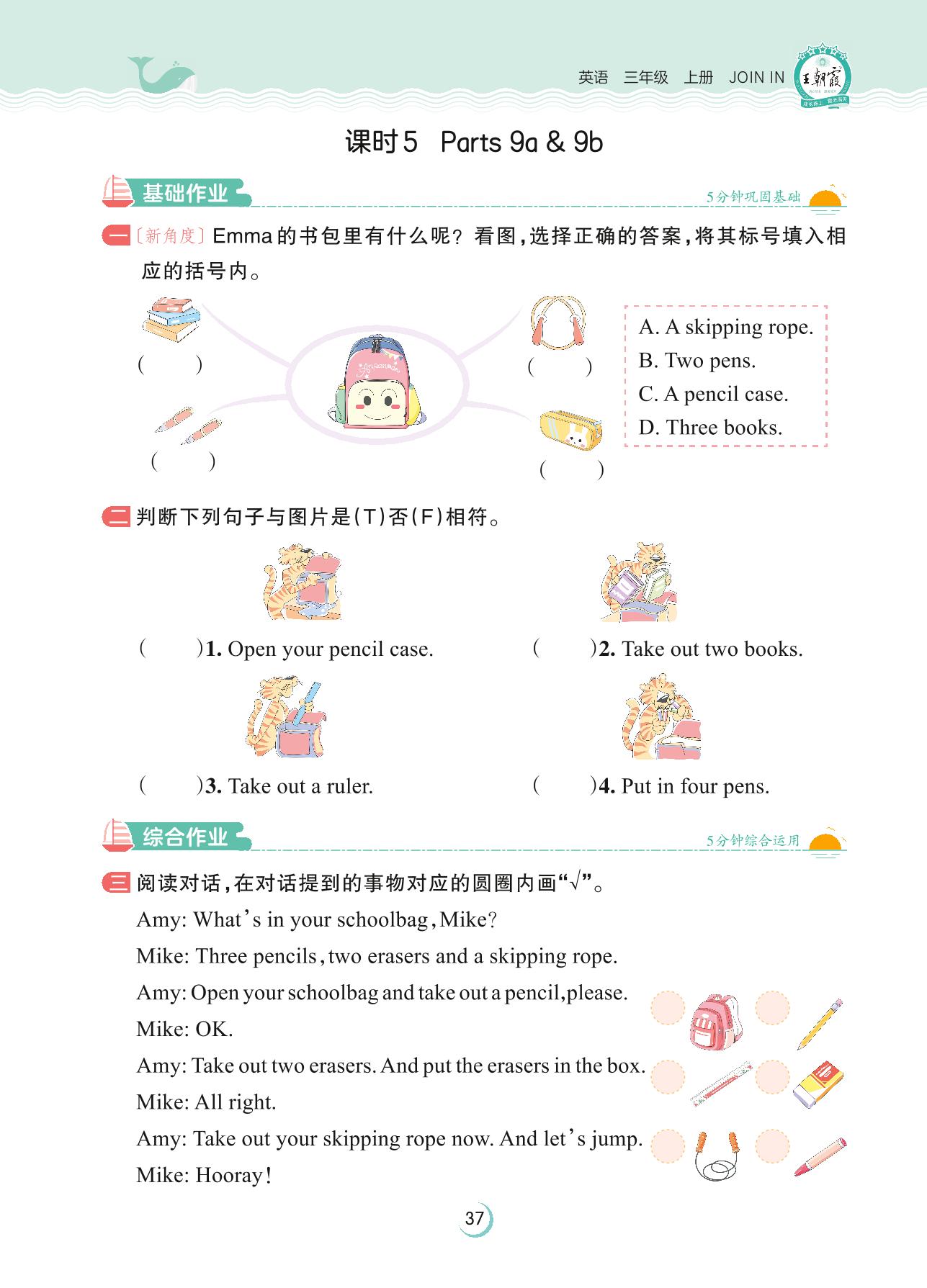 2023上册三年级英语剑桥版 Unit 4—课时5 Parts 9a & 9b