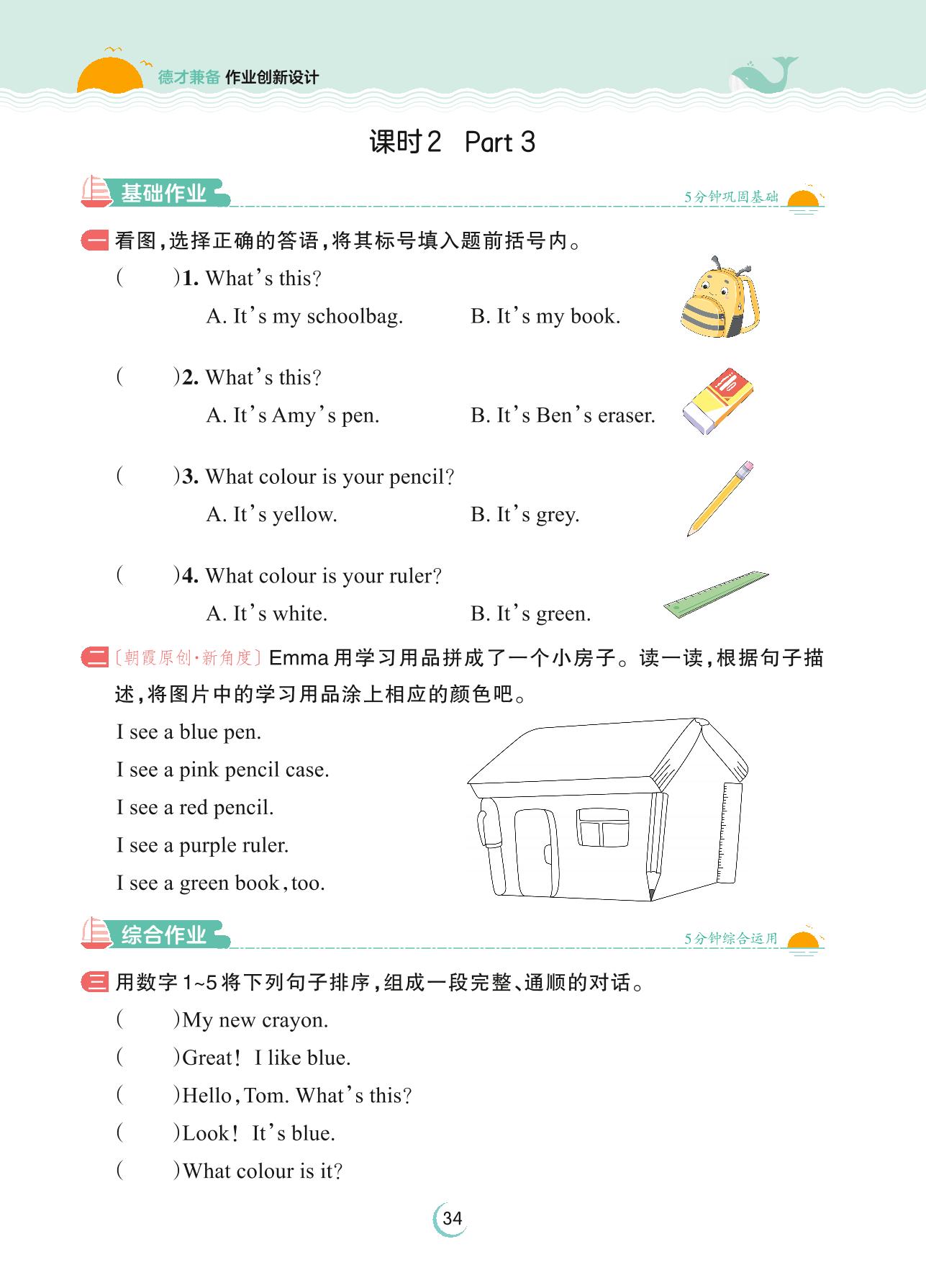 2023上册三年级英语剑桥版 Unit 4—课时2 Part 3