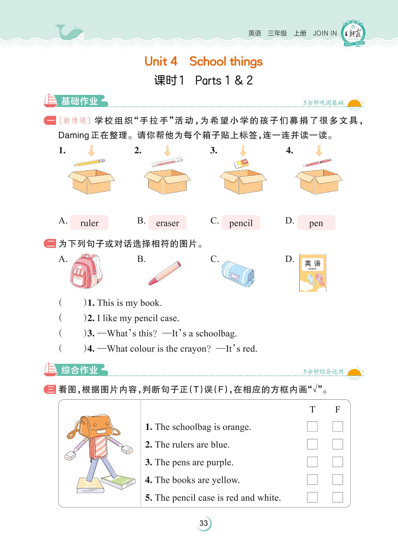 2023上册三年级英语剑桥版 Unit 4—课时1 Parts 1 & 2