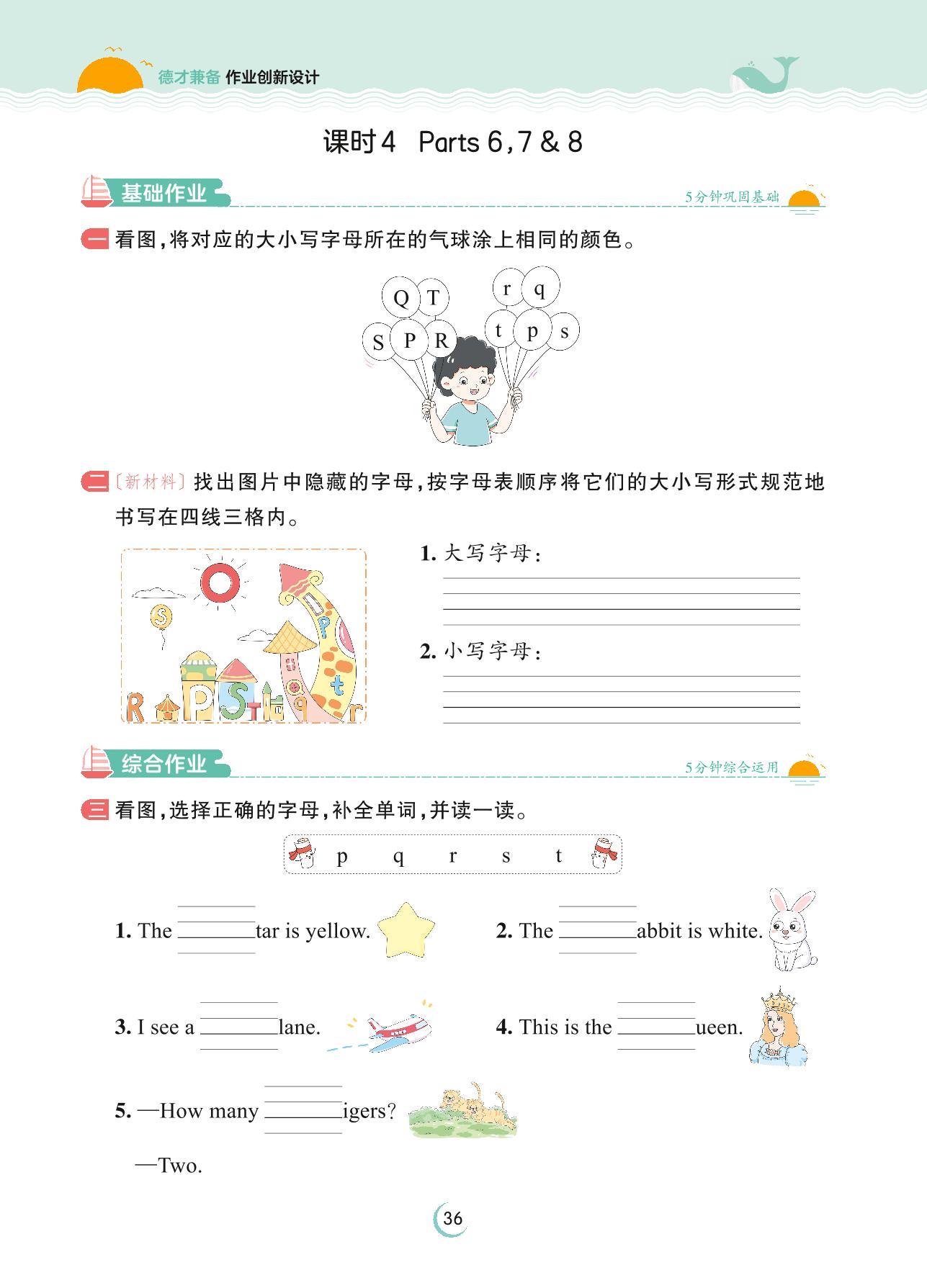 2023上册三年级英语剑桥版 Unit 4—课时4 Parts 6,7 & 8