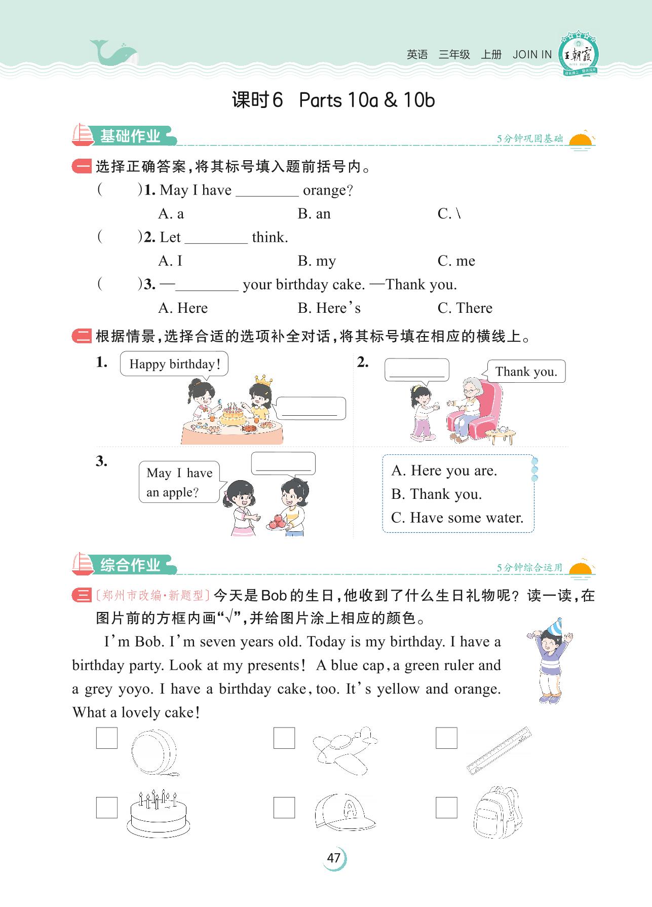 2023上册三年级英语剑桥版 Unit 5—课时6 Parts 10a & 10b