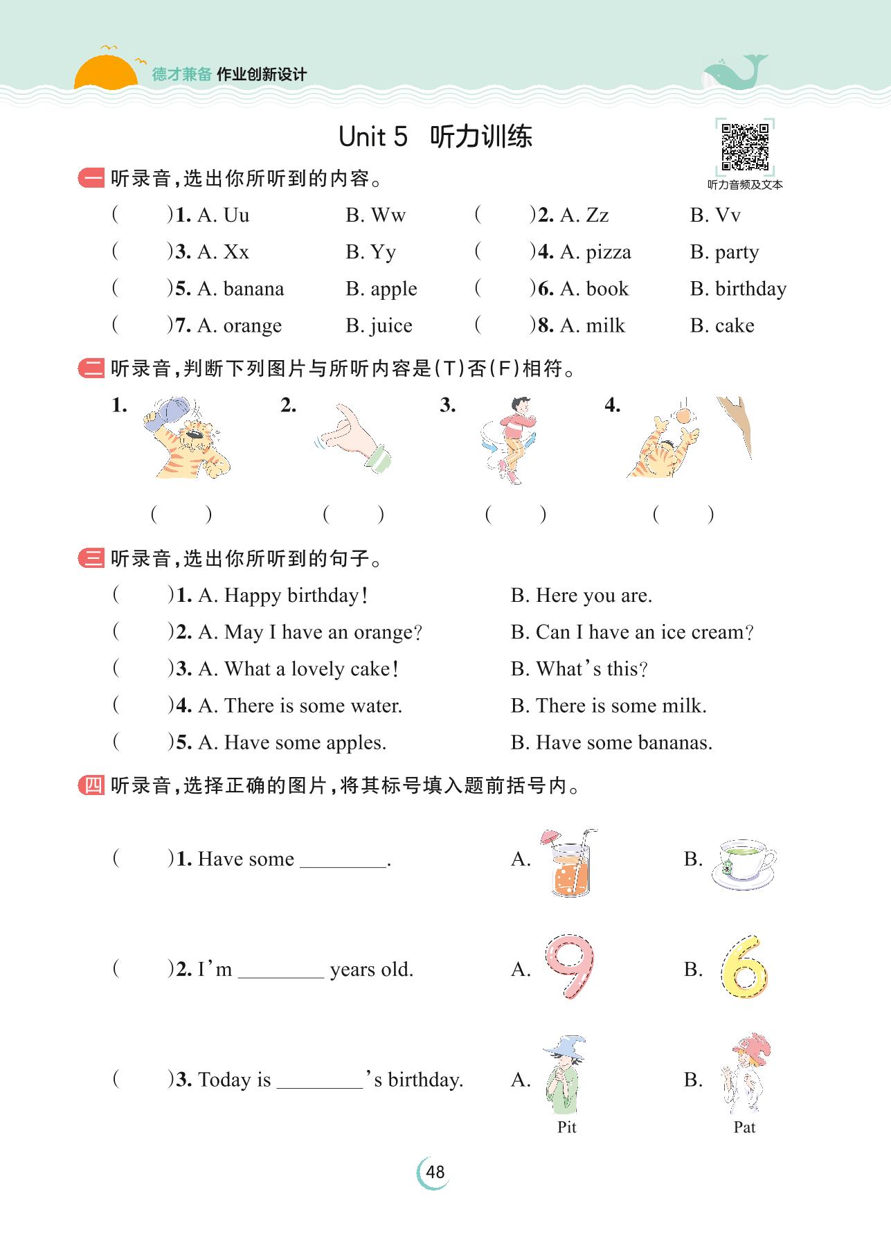 2023上册三年级英语剑桥版 Unit 5 听力训练