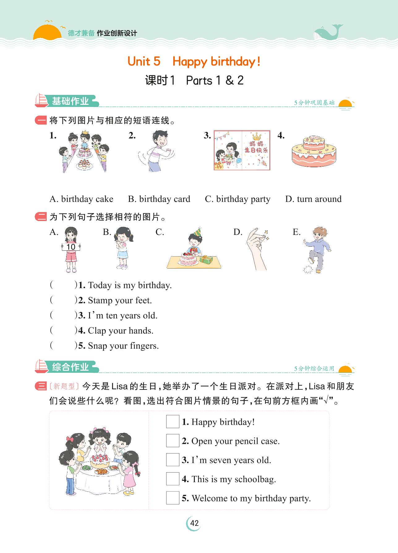 2023上册三年级英语剑桥版 Unit 5—课时1 Parts 1 & 2