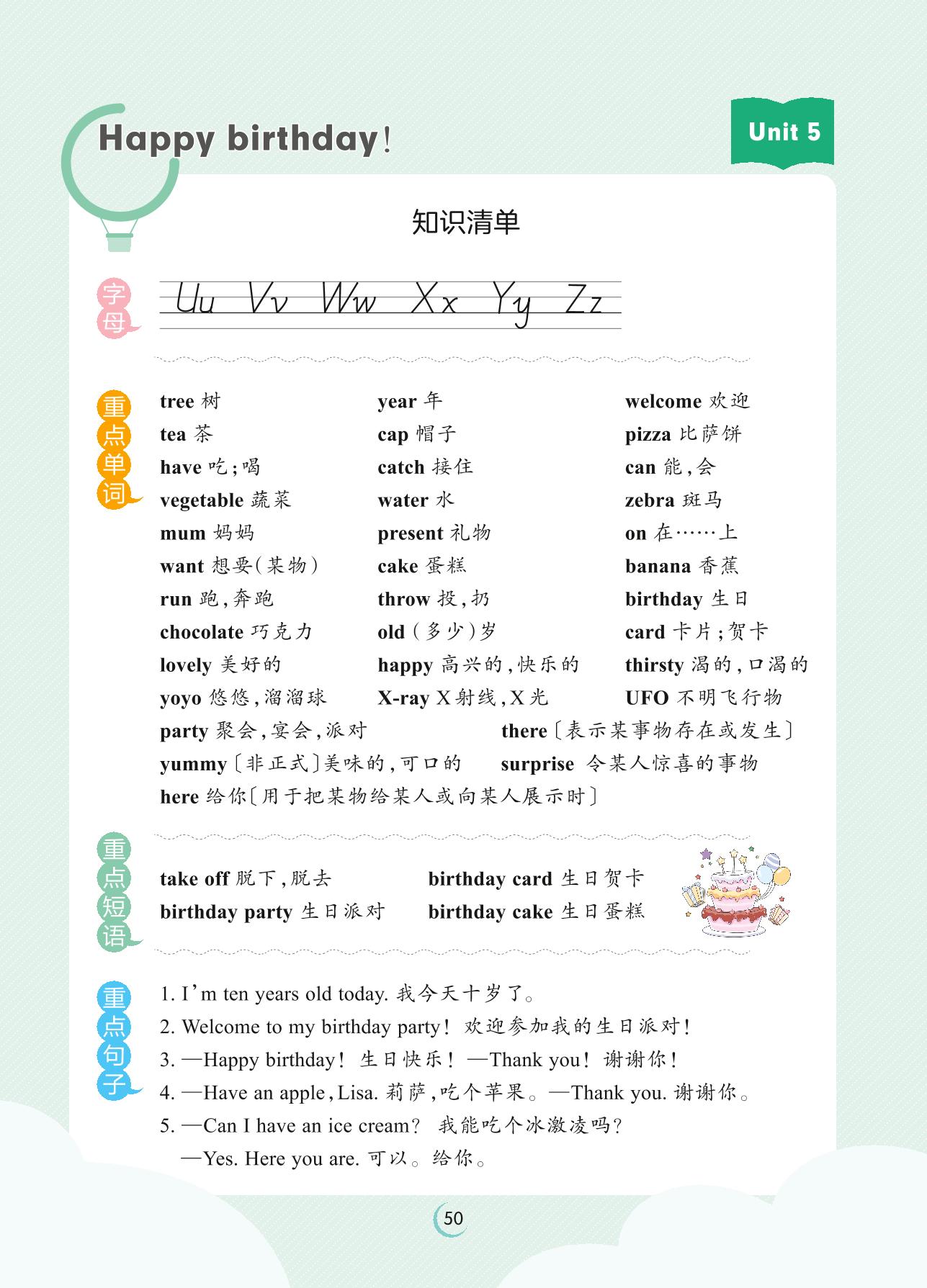 2023上册三年级英语剑桥版 Unit 5 知识清单