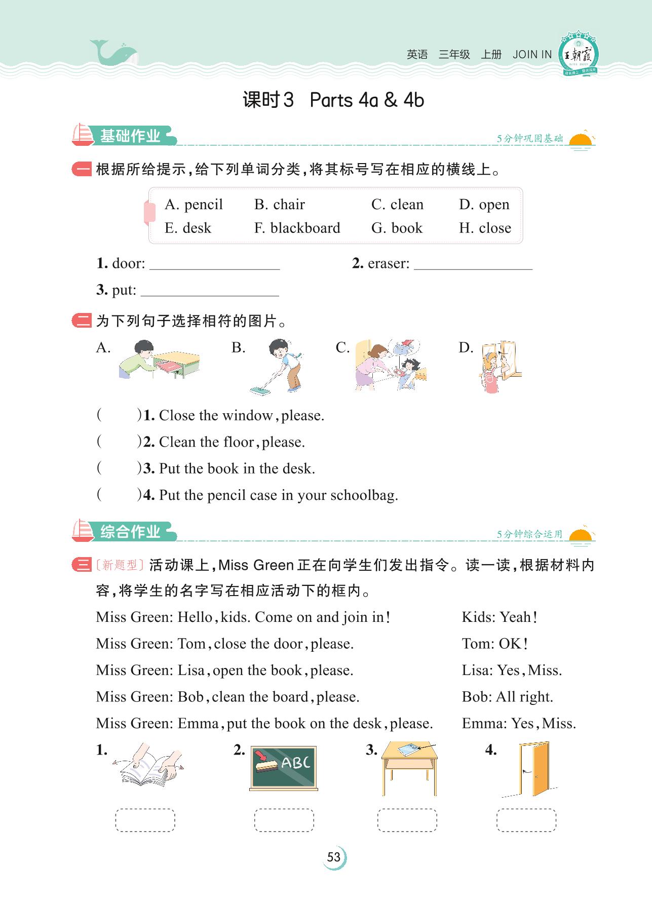 2023上册三年级英语剑桥版 Unit 6—课时3 Parts 4a & 4b