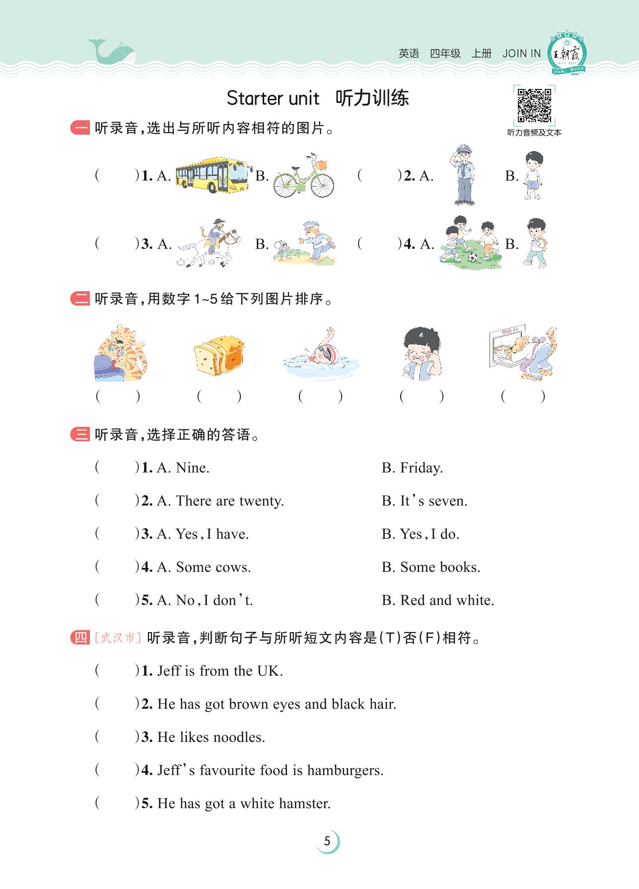 2023上册四年级英语剑桥版 Starter unit 听力训练