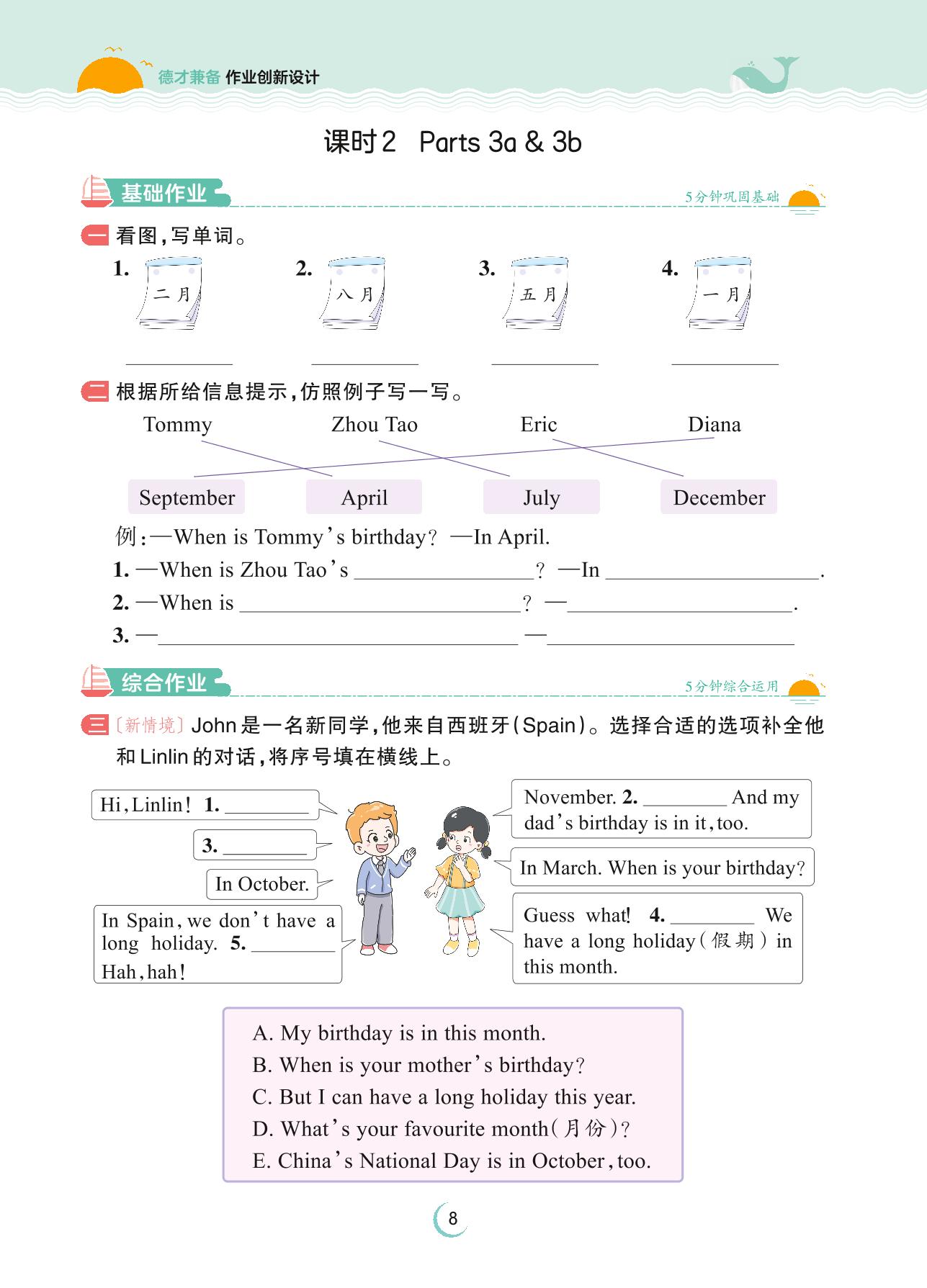 2023上册四年级英语剑桥版 Unit 1—课时2 Parts 3a & 3b