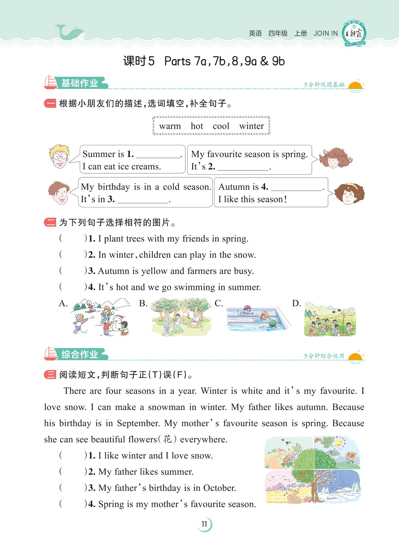 2023上册四年级英语剑桥版 Unit 1—课时5 Parts 7a,7b,8,9a & 9b