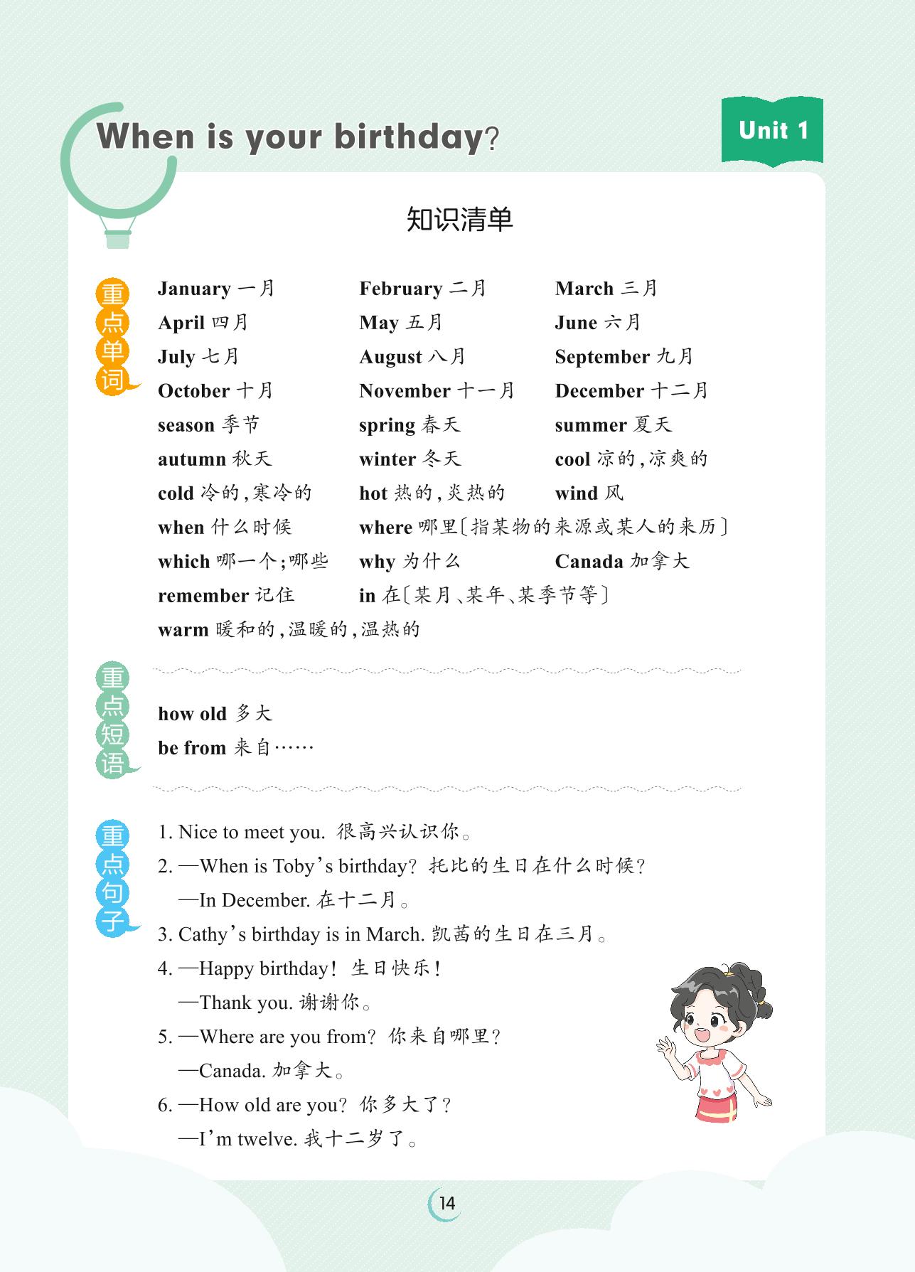 2023上册四年级英语剑桥版 Unit 1 知识清单