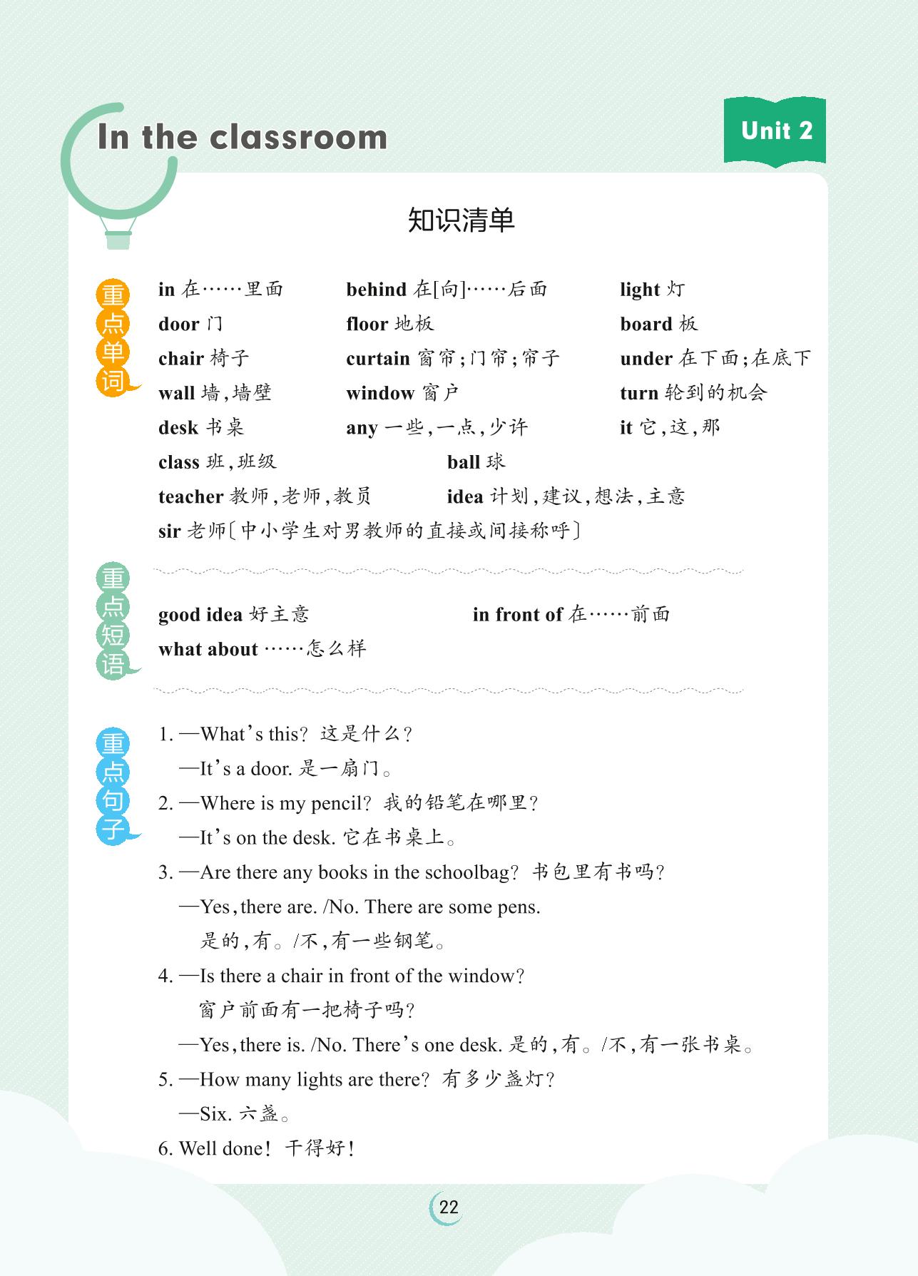 2023上册四年级英语剑桥版 Unit 2 知识清单