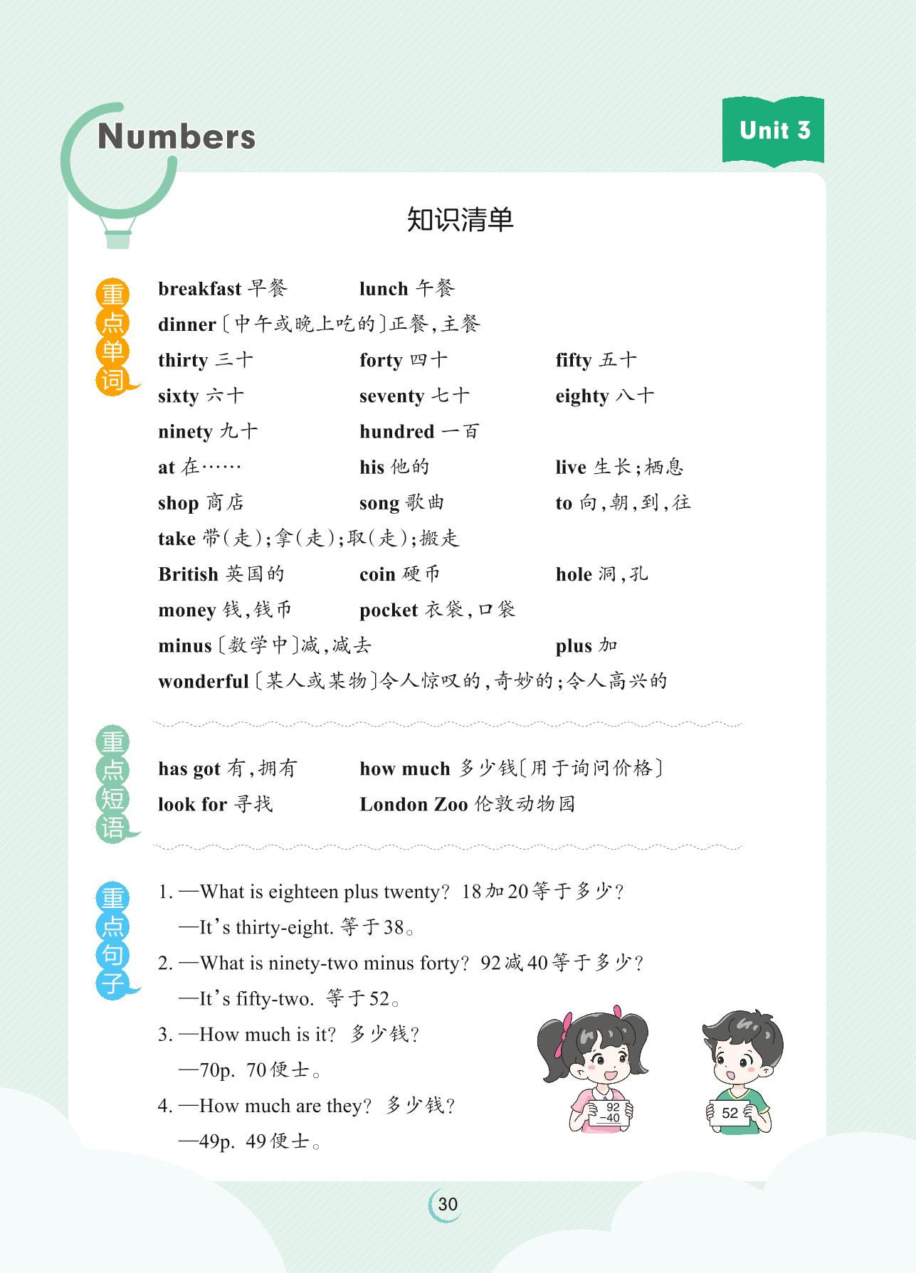 2023上册四年级英语剑桥版 Unit 3 知识清单