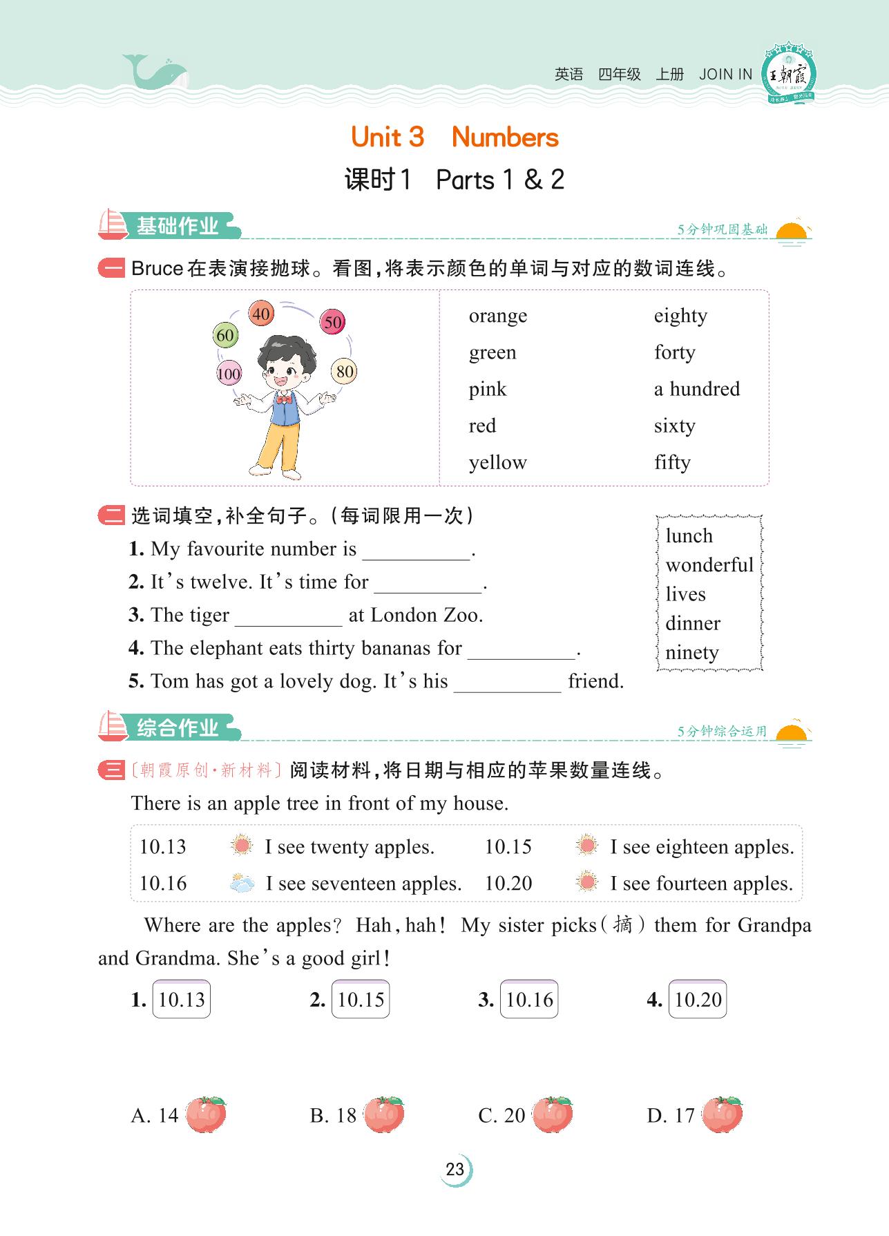 2023上册四年级英语剑桥版 Unit 3—课时1 Parts 1 & 2