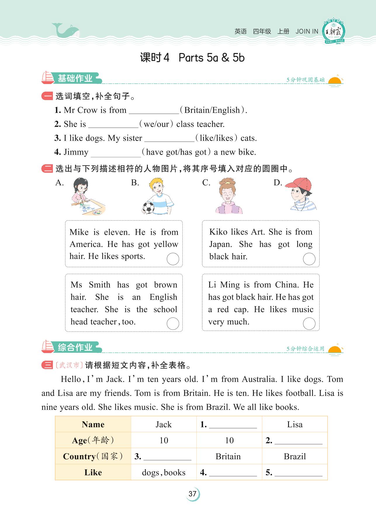2023上册四年级英语剑桥版 Unit 4—课时4 Parts 5a & 5b