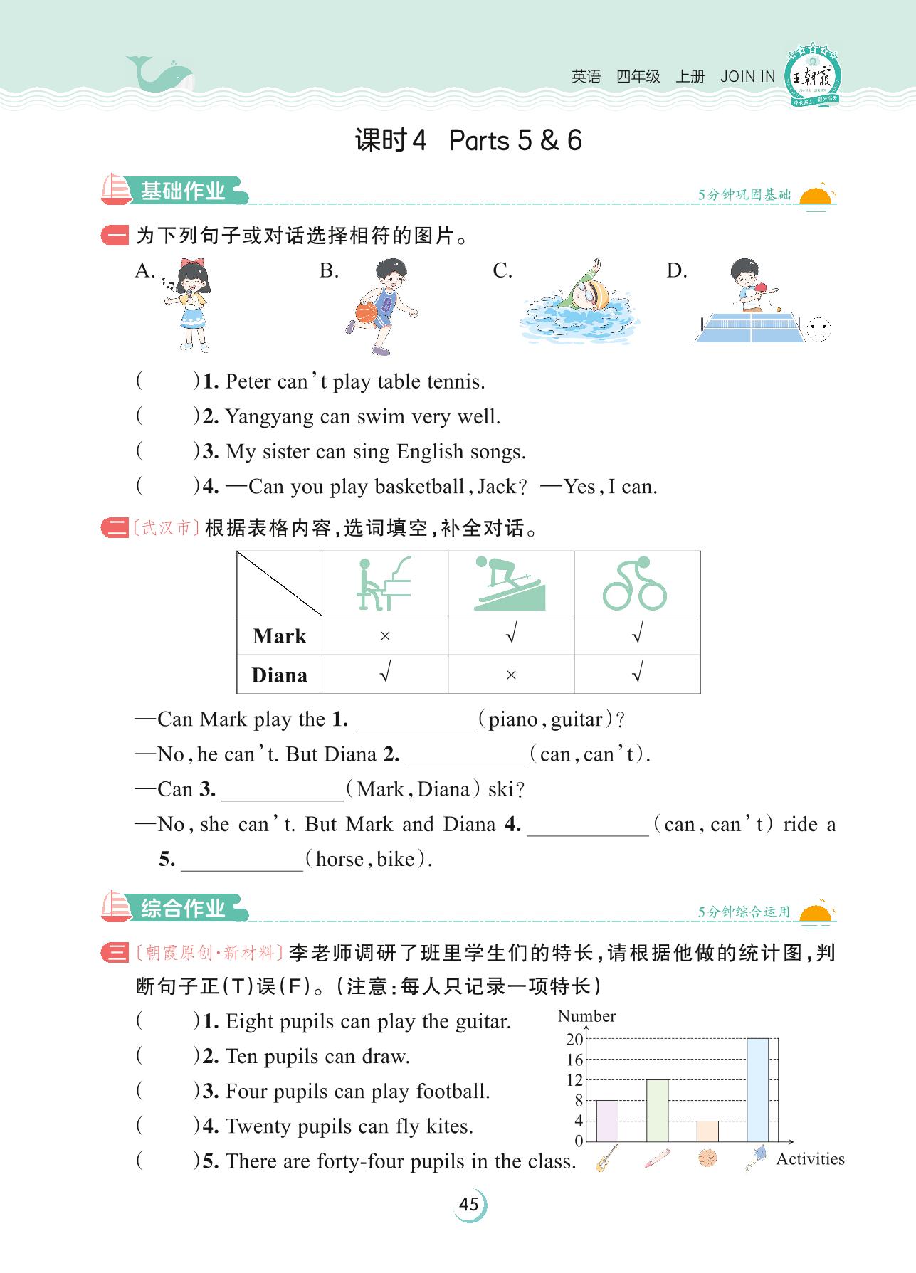 2023上册四年级英语剑桥版 Unit 5—课时4 Parts 5 & 6