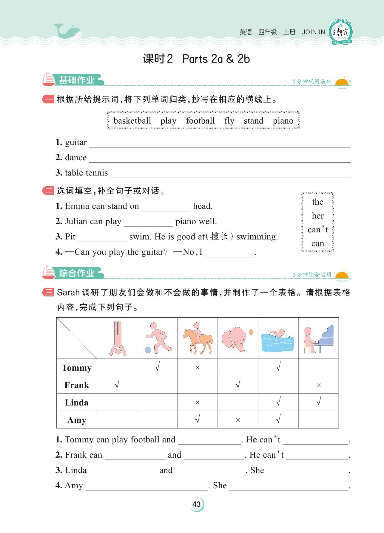 2023上册四年级英语剑桥版 Unit 5—课时2 Parts 2a & 2b