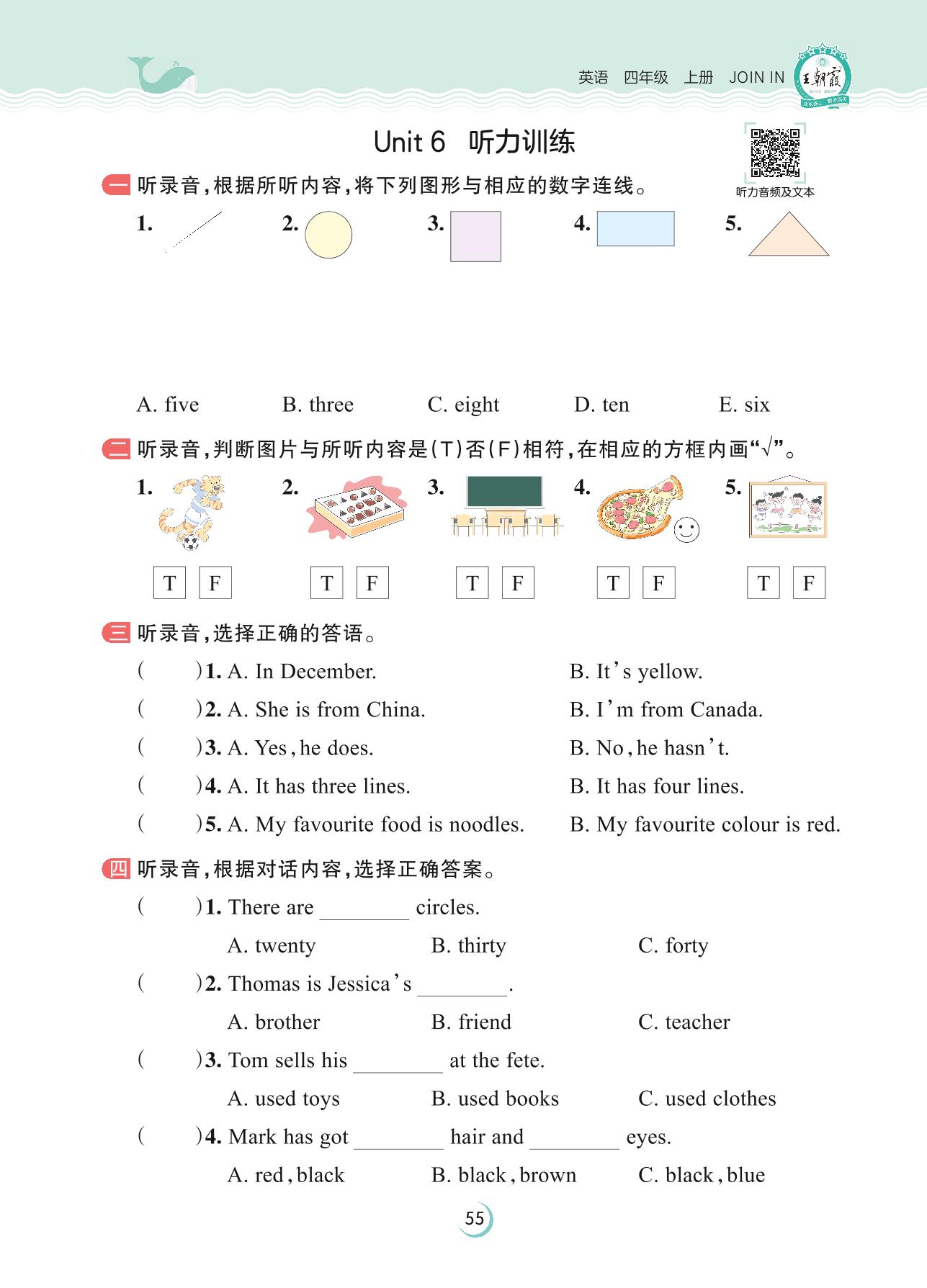 2023上册四年级英语剑桥版 Unit 6 听力训练