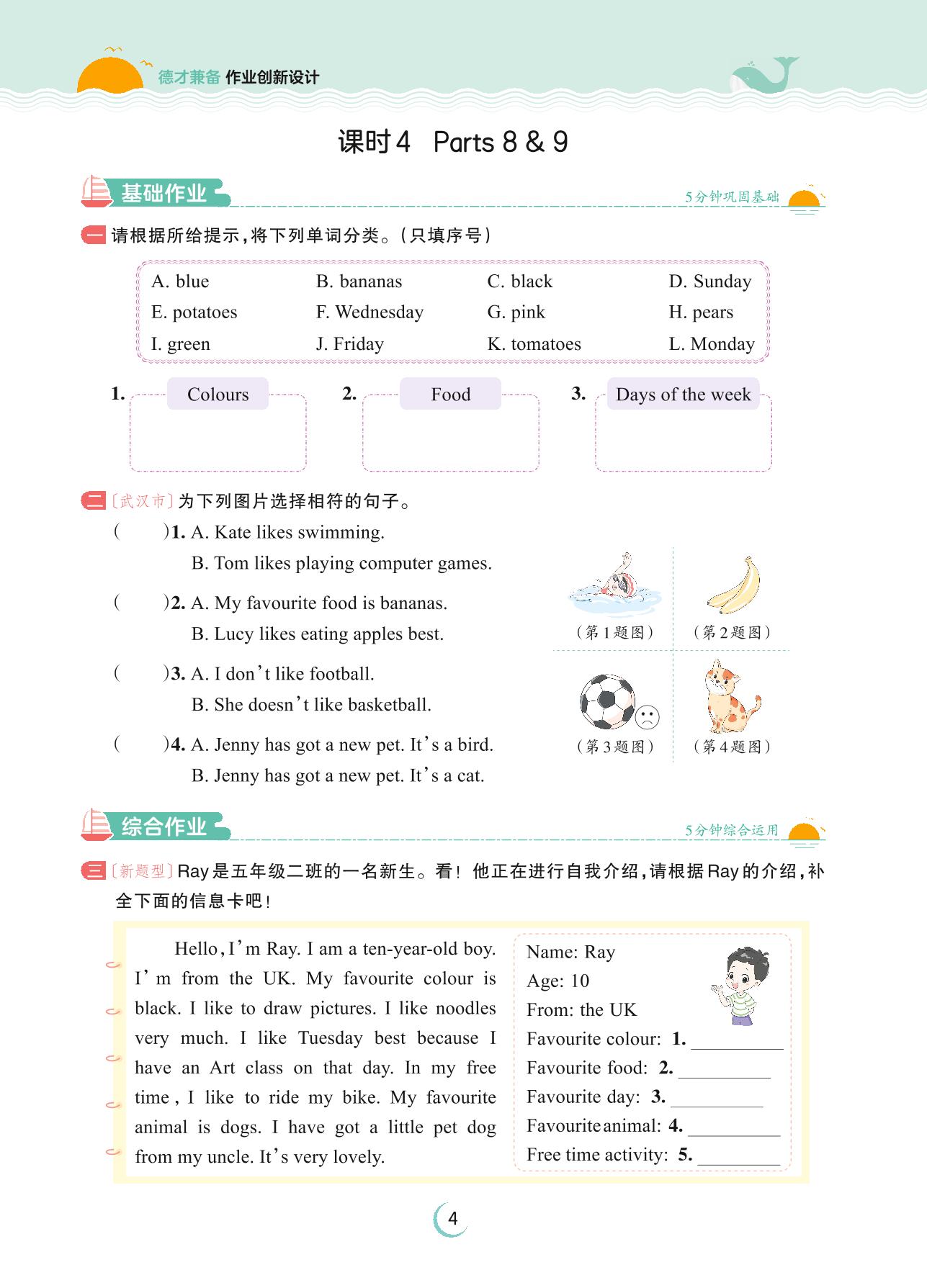 2023上册五年级英语剑桥版 Starter unit—课时 4 Parts 8 & 9