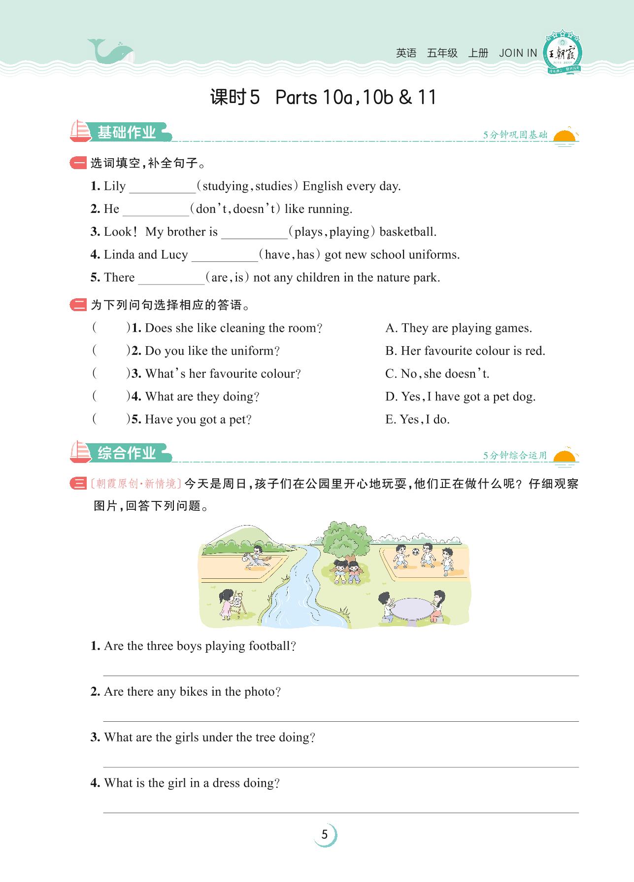 2023上册五年级英语剑桥版 Starter unit—课时 5 Partsa,10b & 11