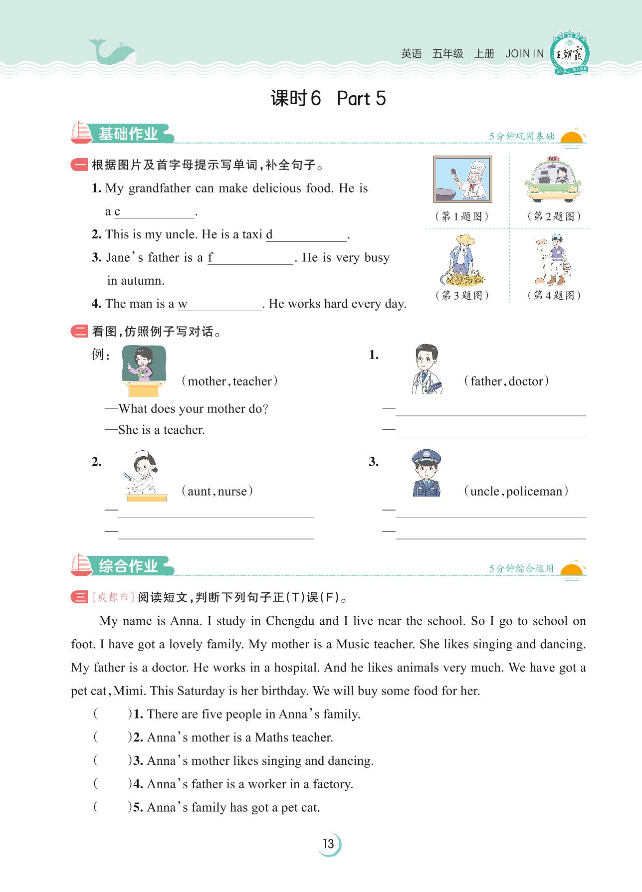 2023上册五年级英语剑桥版 Unit 1—课时 6 Part 5