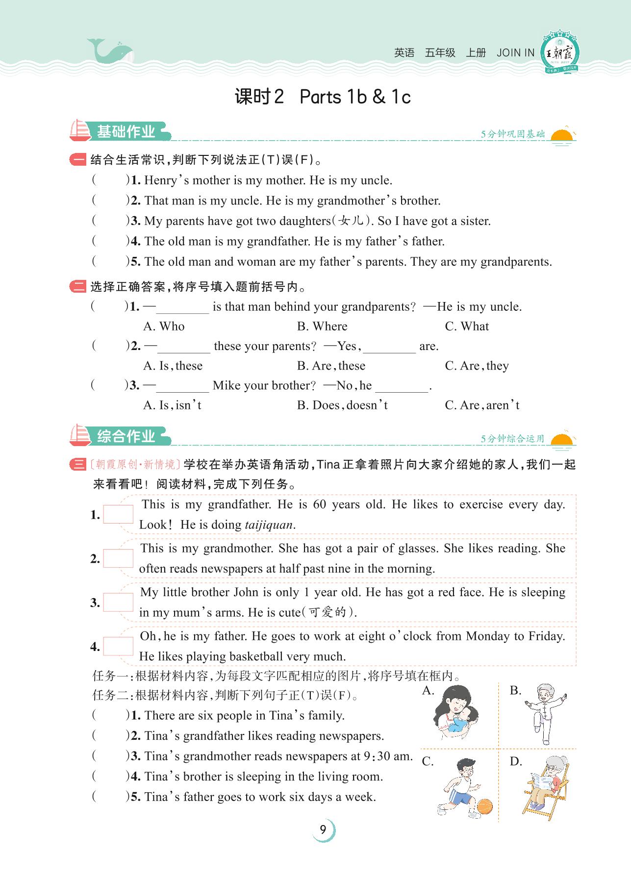 2023上册五年级英语剑桥版 Unit 1—课时 2 Parts 1b & 1c
