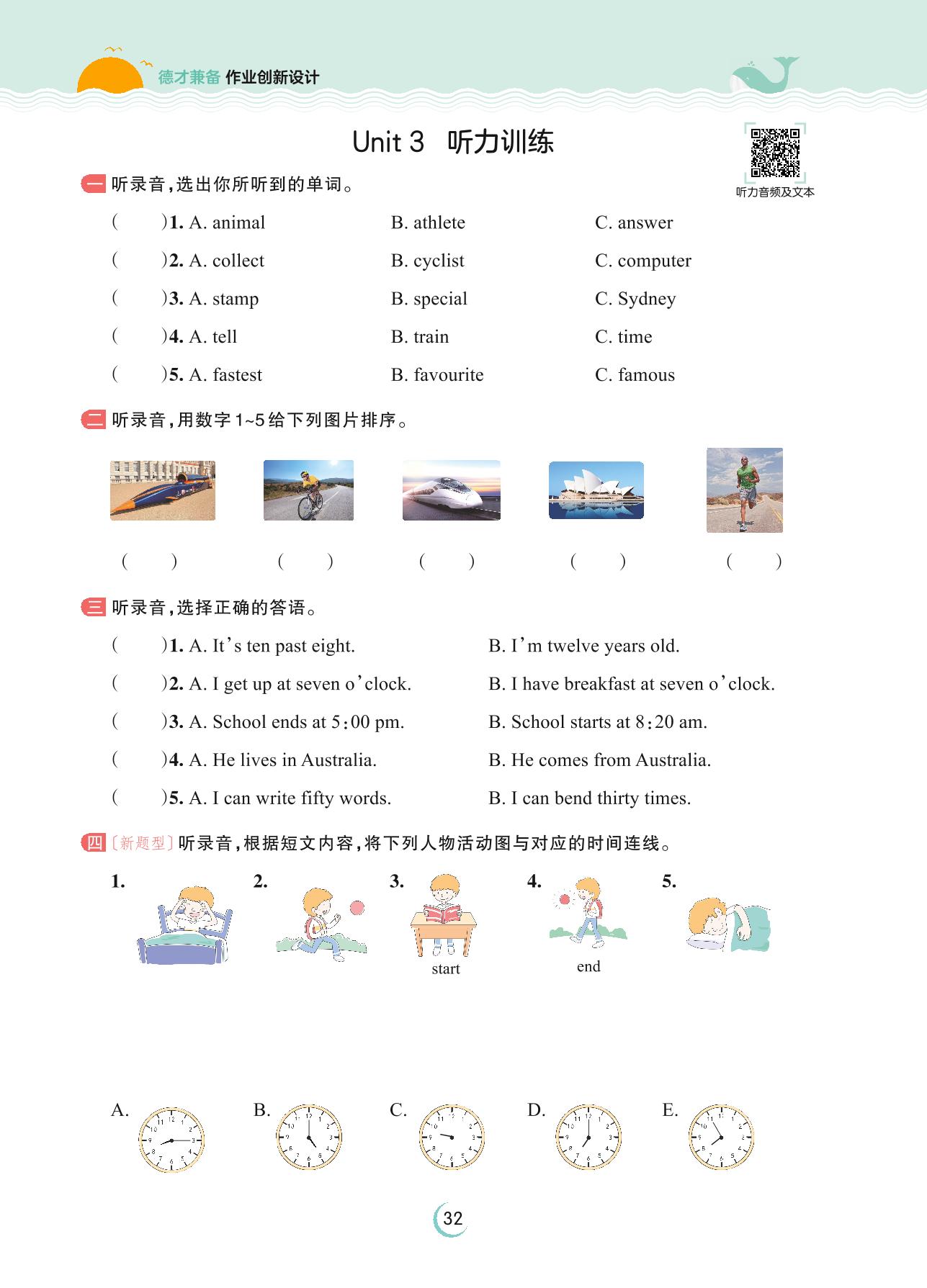 2023上册五年级英语剑桥版 Unit 3 听力训练
