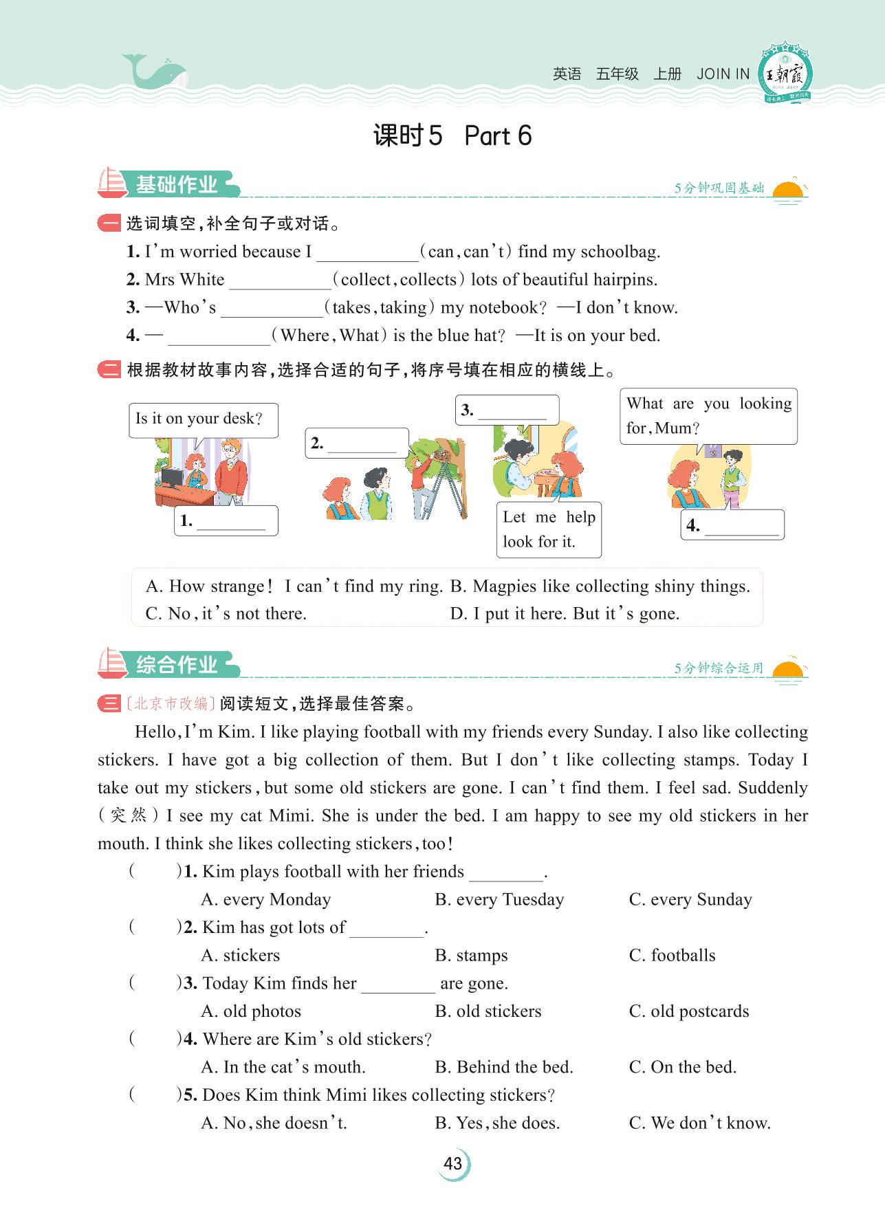 2023上册五年级英语剑桥版 Unit 4—课时 5 Part 6