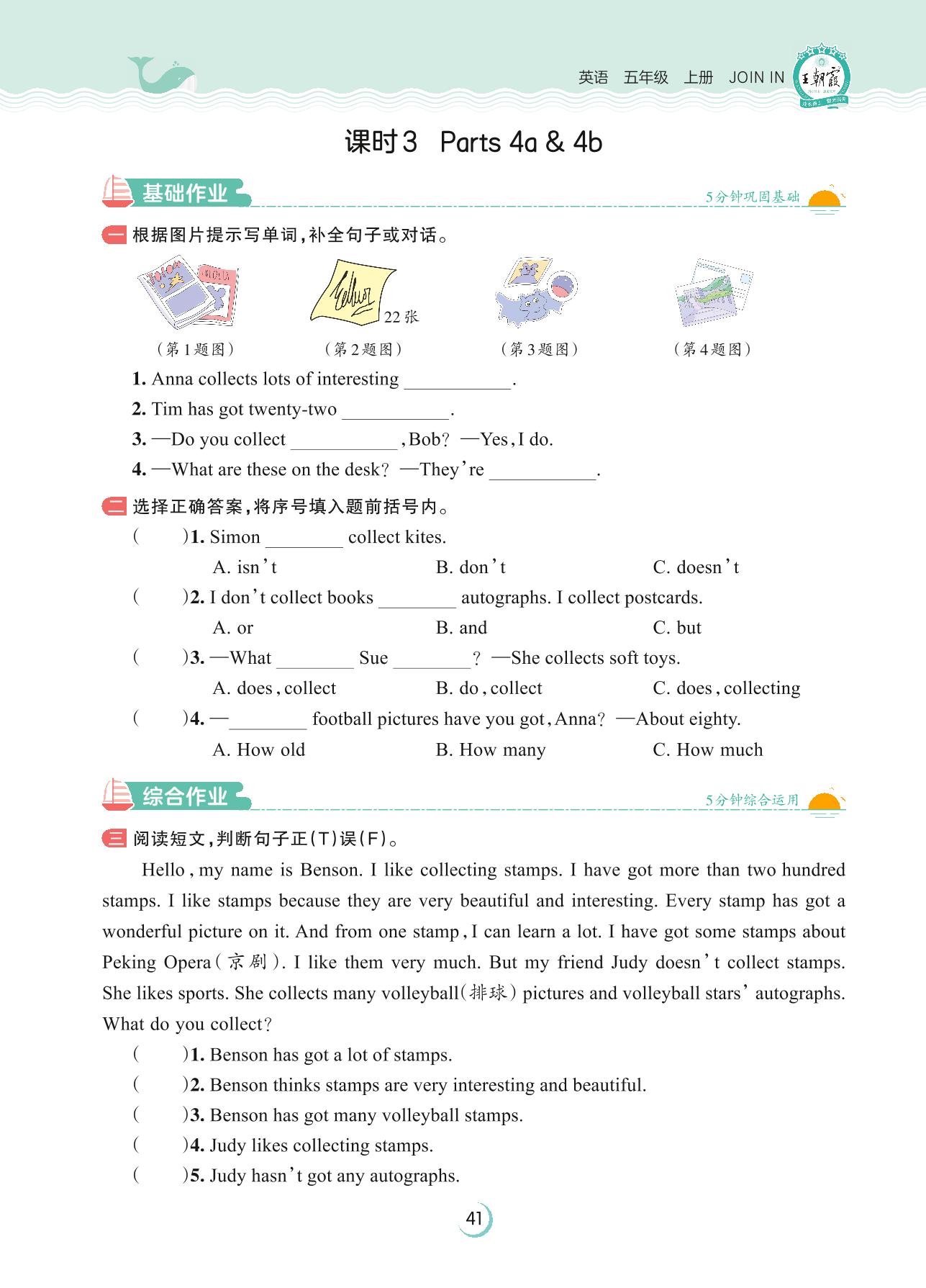 2023上册五年级英语剑桥版 Unit 4—课时 3 Parts 4a & 4b