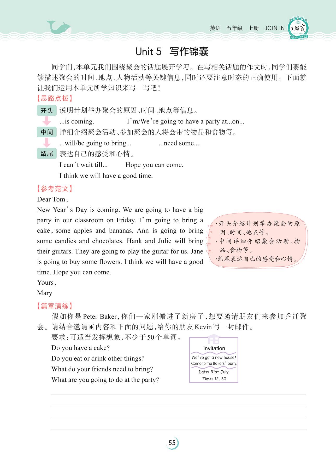 2023上册五年级英语剑桥版 Unit 5 写作锦囊